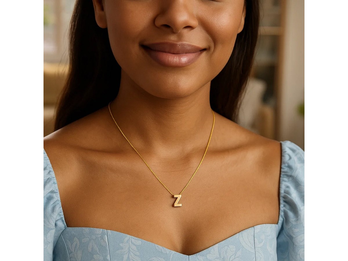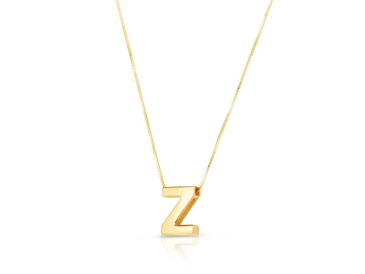 14K Yellow Gold Yours Truly Block Letter Initial Z Necklace