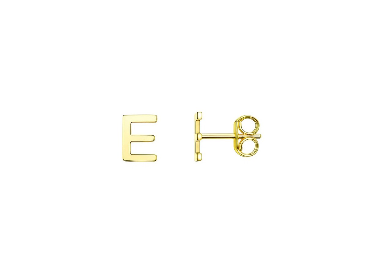 14K Yellow Gold Yours Truly Initial E Stud Earrings