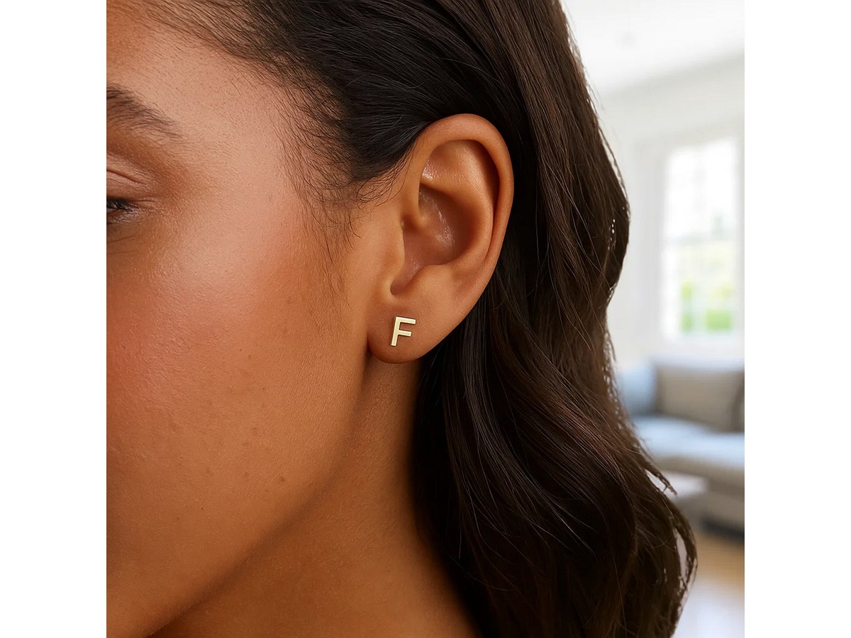 14K Yellow Gold Yours Truly Initial F Stud Earrings