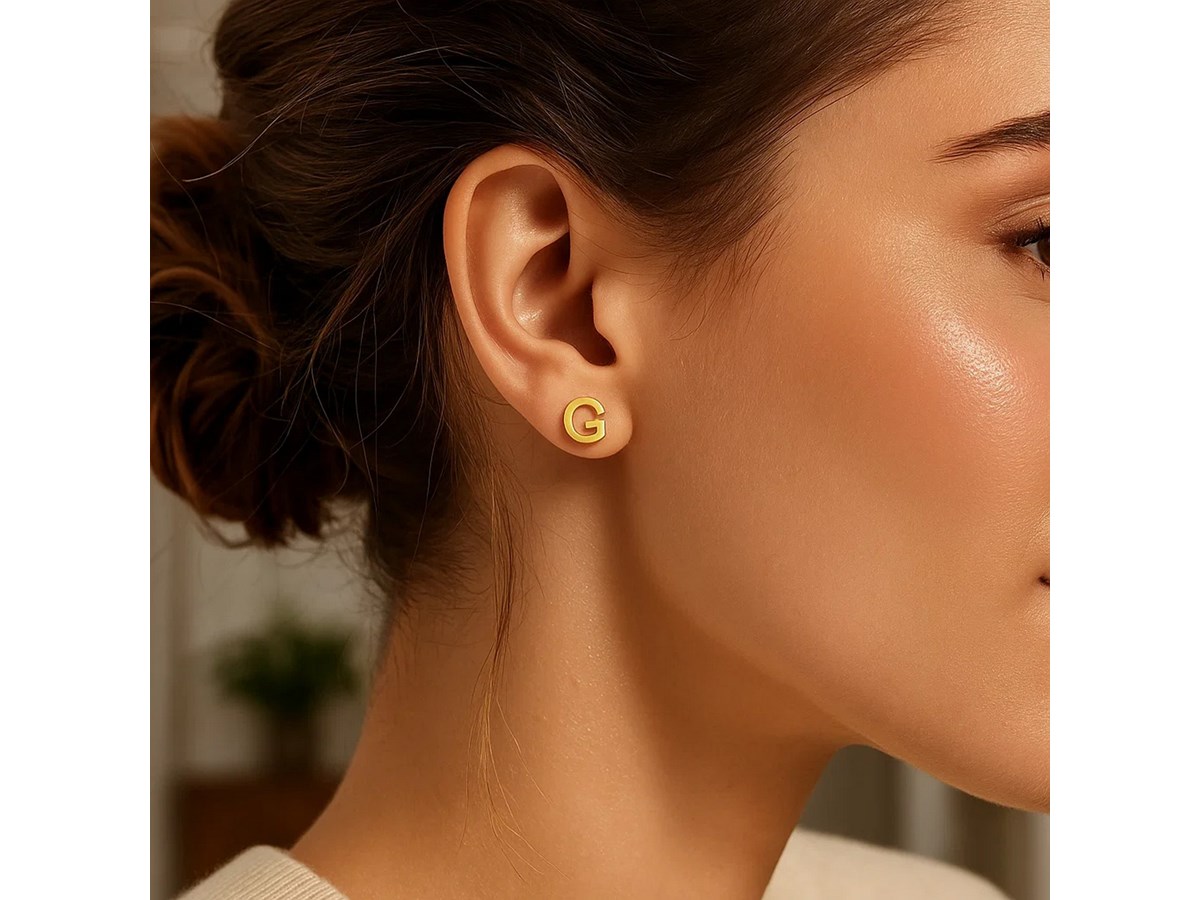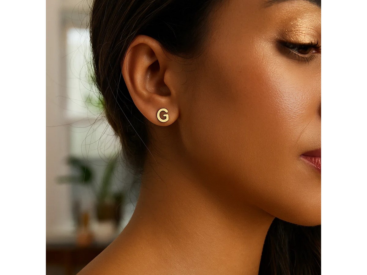 Elegant 14K yellow gold “Yours Truly” Initial G stud earring featuring a polished finish and refined minimalist design. This personalized piece adds a touch of timeless charm, making it perfect for everyday elegance or a thoughtful, meaningful gift.