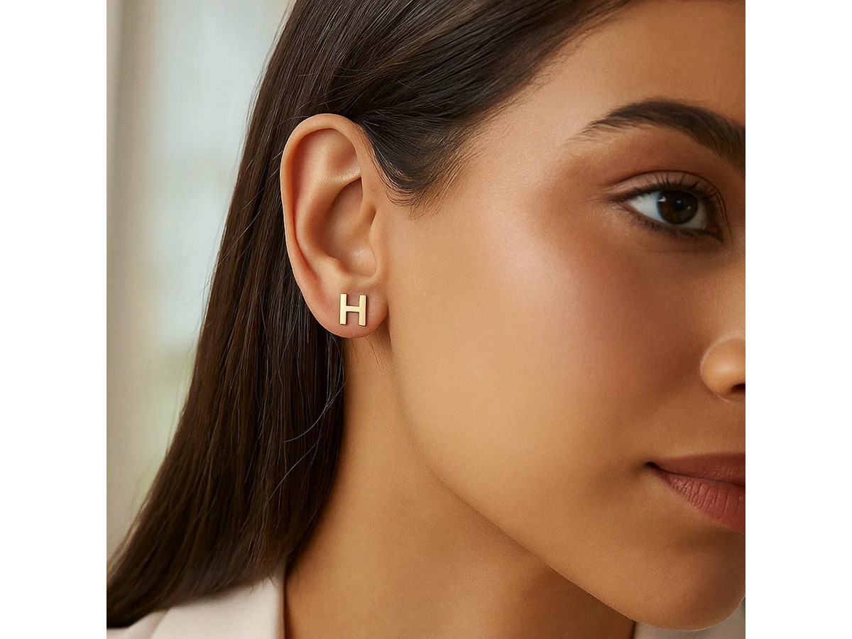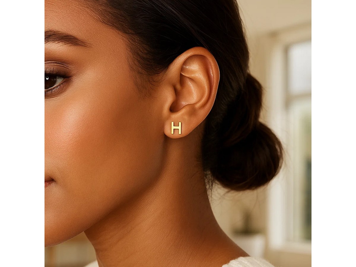 Elegant 14K yellow gold “Yours Truly” Initial H stud earring featuring a polished finish and refined minimalist design. This personalized piece adds a touch of timeless charm, making it perfect for everyday elegance or a thoughtful, meaningful gift.
