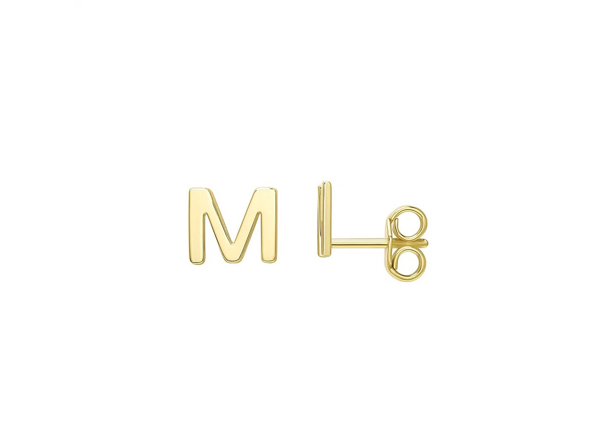 14K Yellow Gold Yours Truly Initial M Stud Earrings