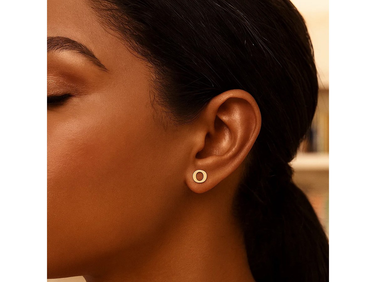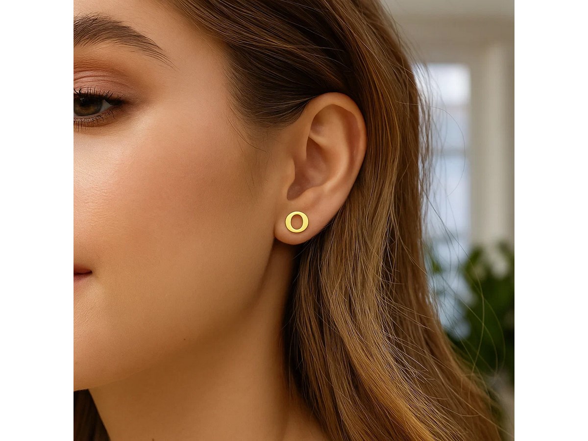 14K Yellow Gold Yours Truly Initial O Stud Earrings
