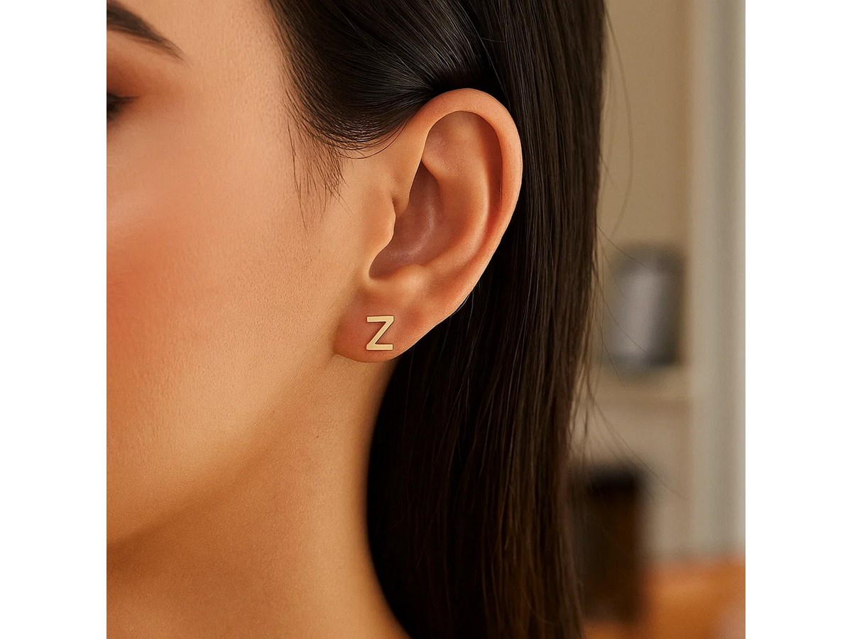 14K Yellow Gold Yours Truly Initial Z Stud Earrings