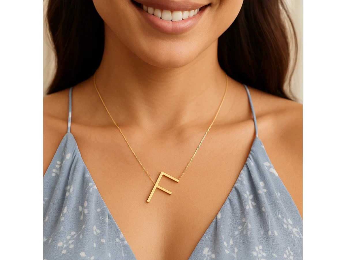 This 14K yellow gold Yours Truly large initial F necklace features a bold, polished block-letter pendant on a delicate chain. Its radiant shine and personalized style make it perfect for everyday wear, thoughtful gifting, or layering with your favorite pieces.