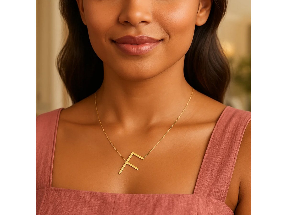 14K Yellow Gold Yours Truly Large Initial F Necklace