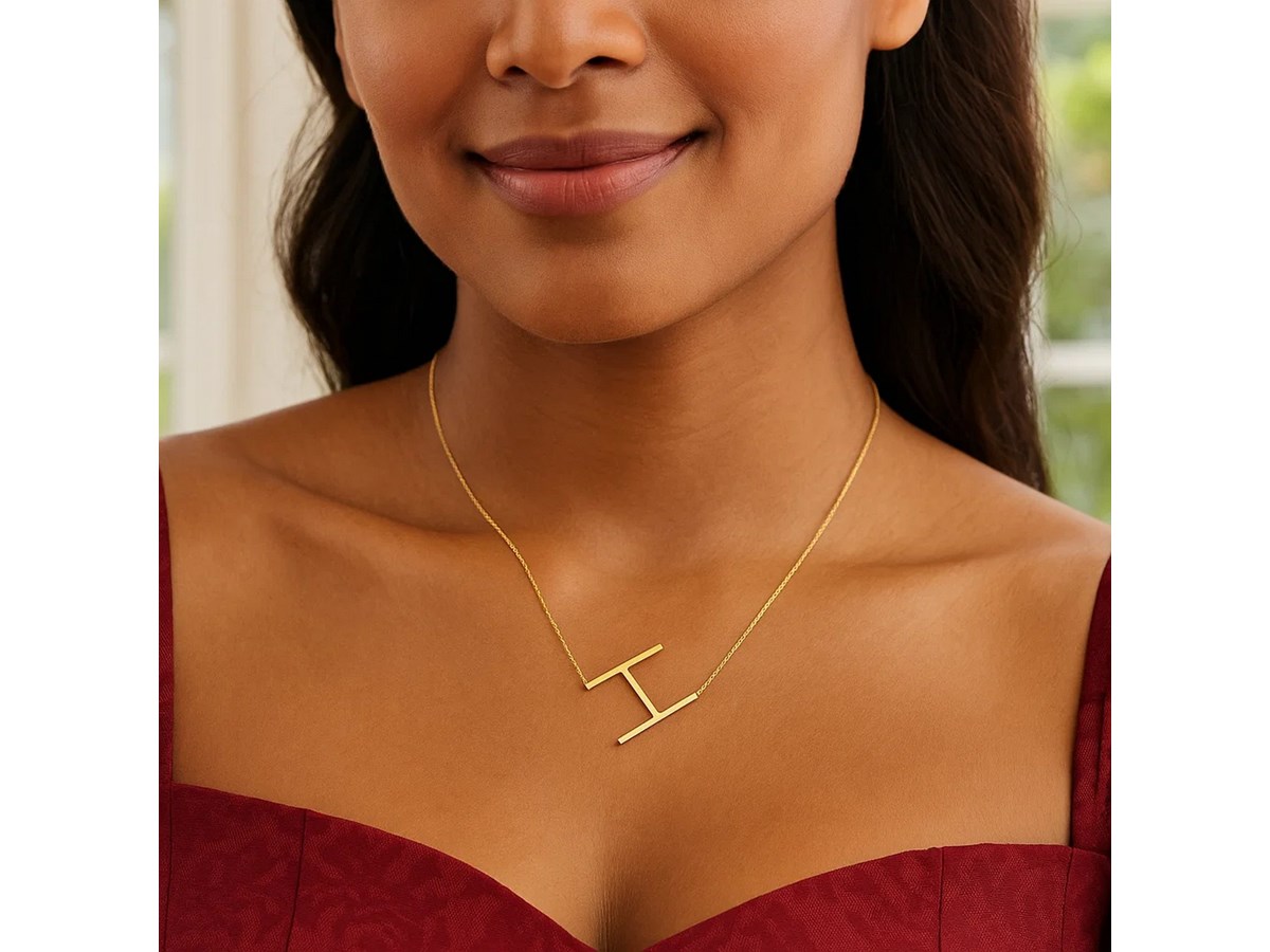 This 14K yellow gold Yours Truly large initial H necklace features a bold, polished block-letter pendant on a delicate chain. Its bright golden shine and personalized look make it perfect for everyday wear, meaningful gifting, or layering.