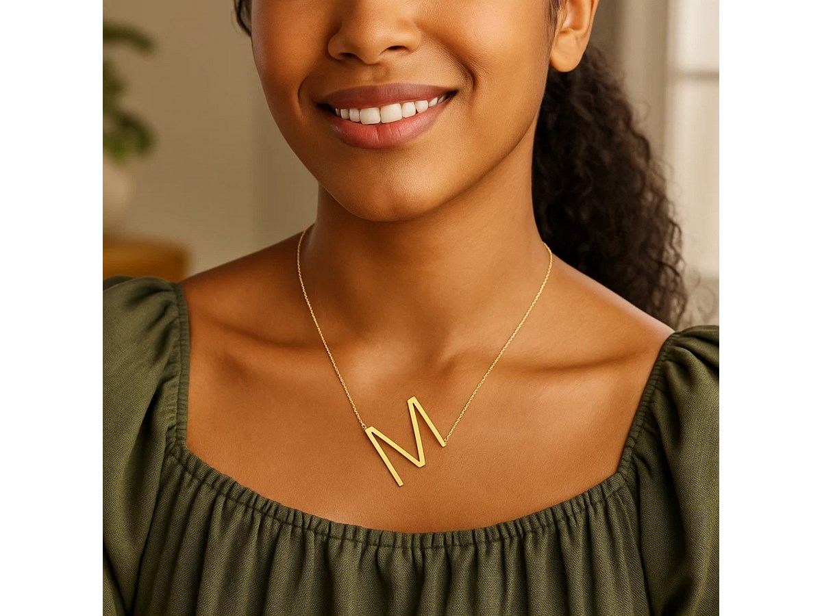 14K Yellow Gold Yours Truly Large Initial M Necklace