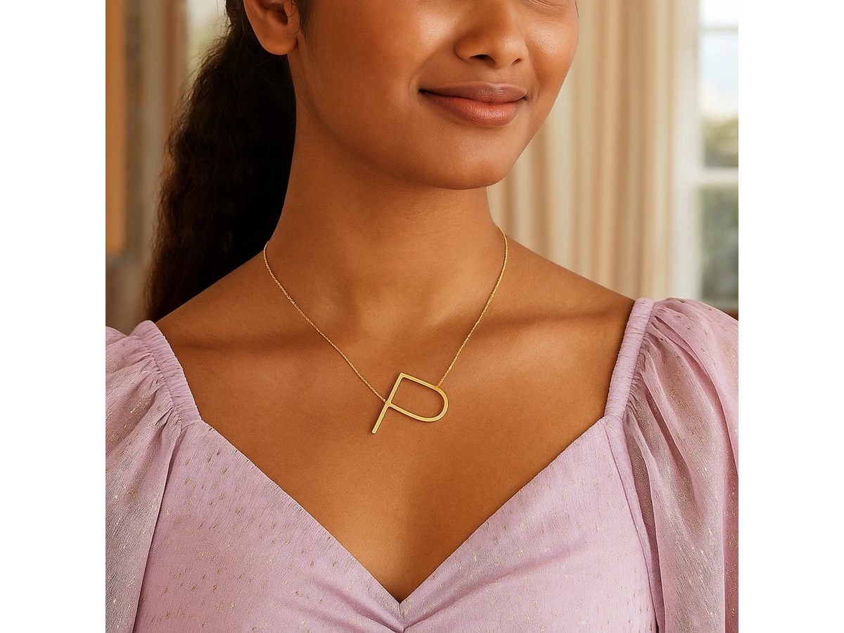 14K Yellow Gold Yours Truly Large Initial P Necklace