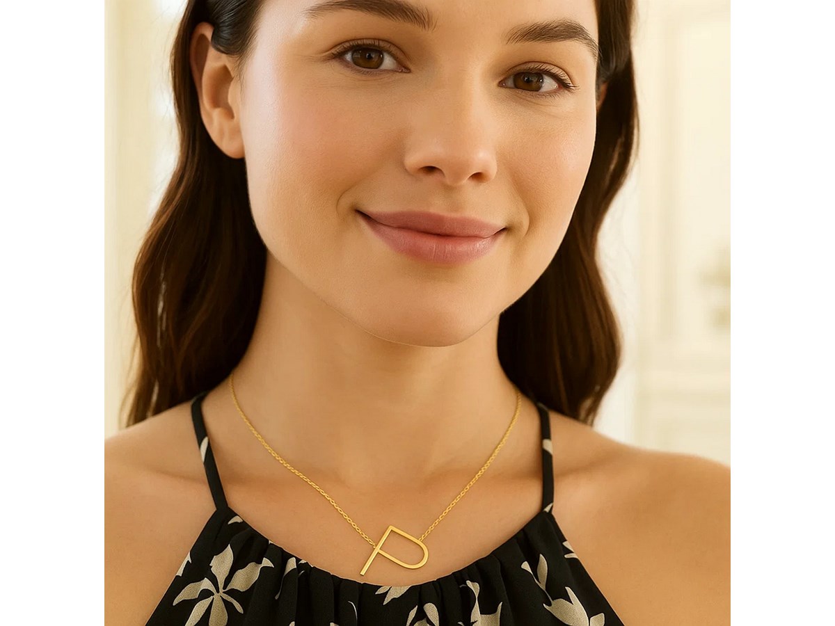 This 14K Yellow Gold Yours Truly Large Initial P Necklace showcases a bold, beautifully sculpted initial that catches the light with every movement. Suspended from a polished gold chain, the oversized letter brings modern flair to a classic concept, creating a standout piece that feels both expressive and timeless. Whether worn daily or gifted to someone special, it adds a heartfelt touch of style that never goes unnoticed.
