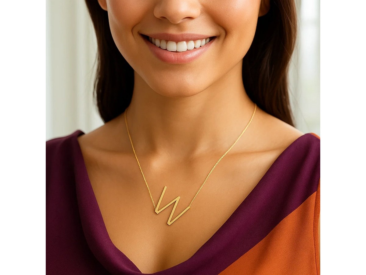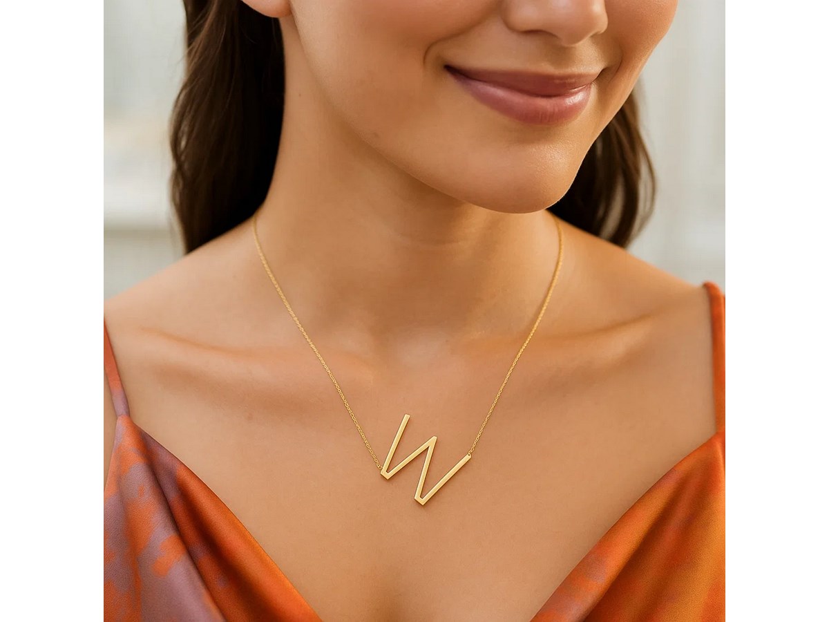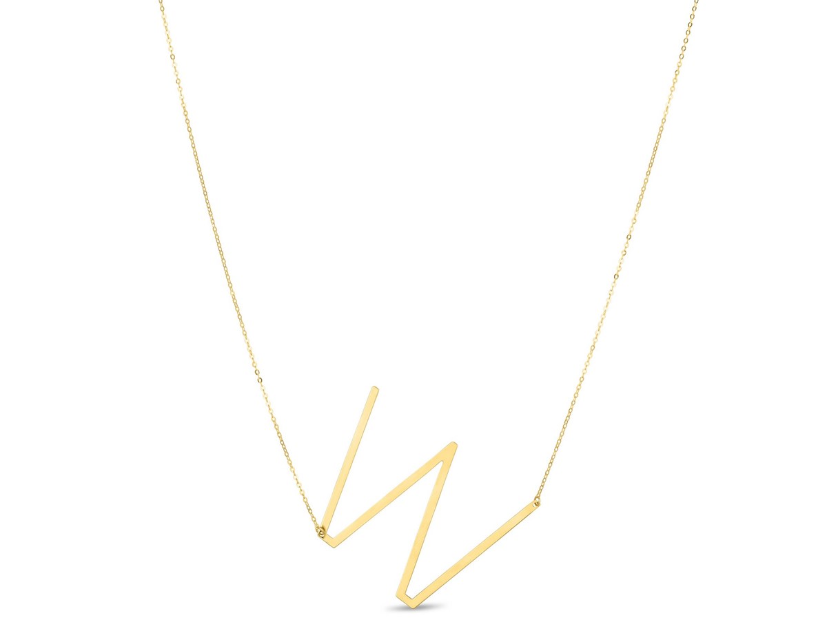 14K Yellow Gold Yours Truly Large Initial W Necklace