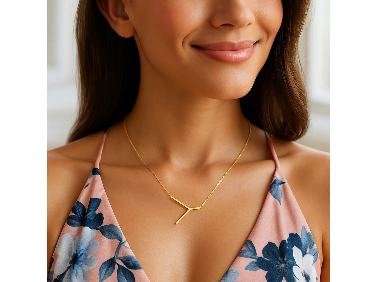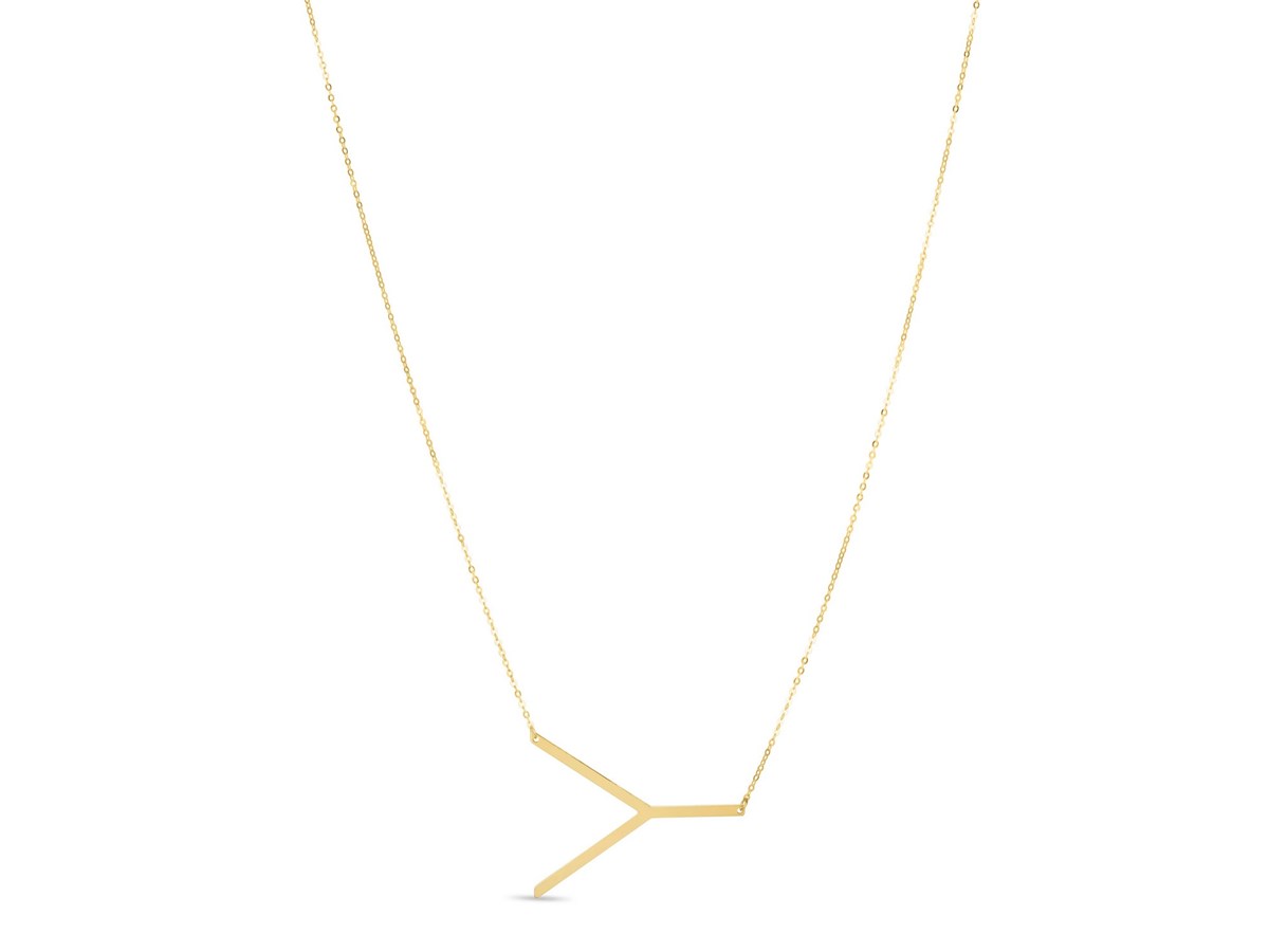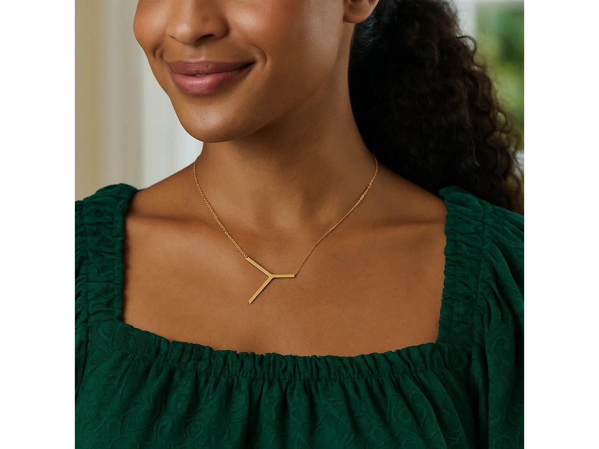 14K Yellow Gold Yours Truly Large Initial Y Necklace