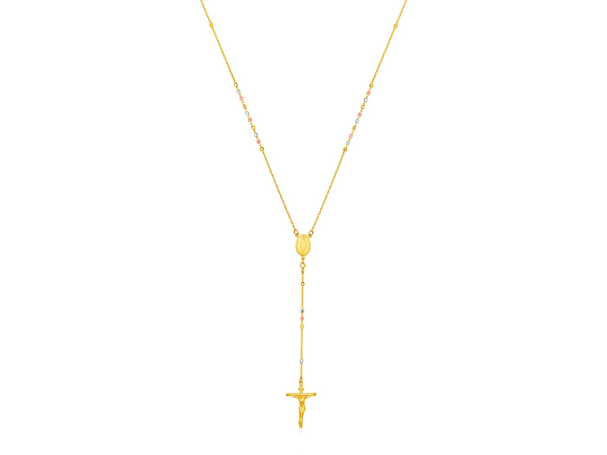 14k Tri Color Gold Rosary Style Necklace