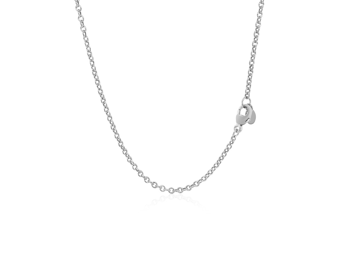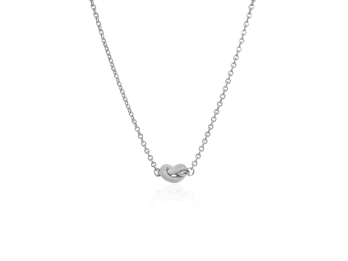 An intriguingly beautiful polished knot adorns this special and heartfelt 14k white gold necklace. Necklace is 18 inches long and closes with a lobster clasp.