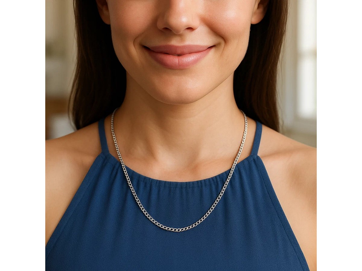 14k White Gold 2.20 mm Light Gourmette Chain with Lobster Clasp. Available in 16 inches, 18 inches, 20 inches and 22 inches.