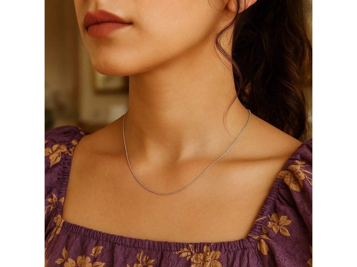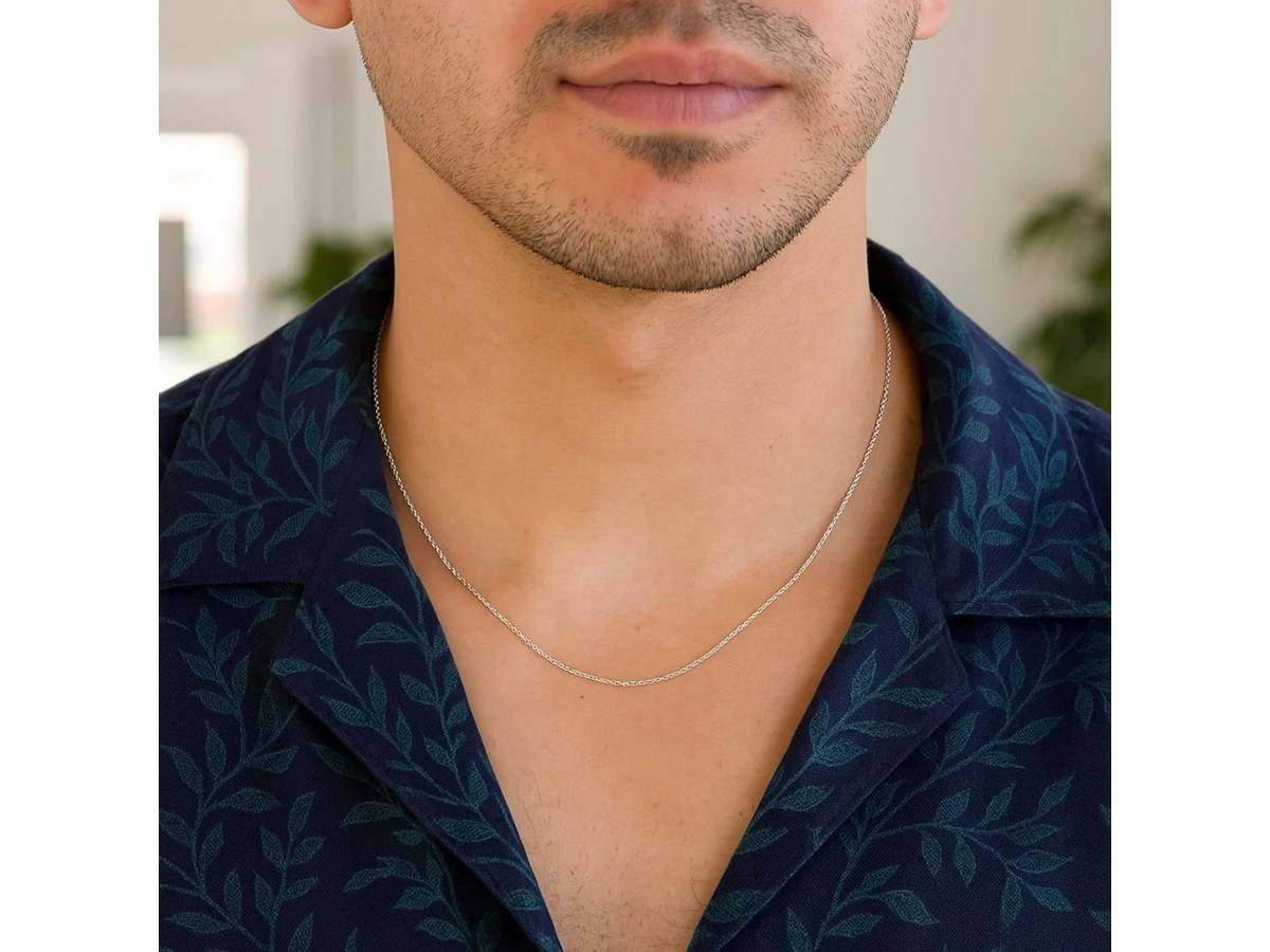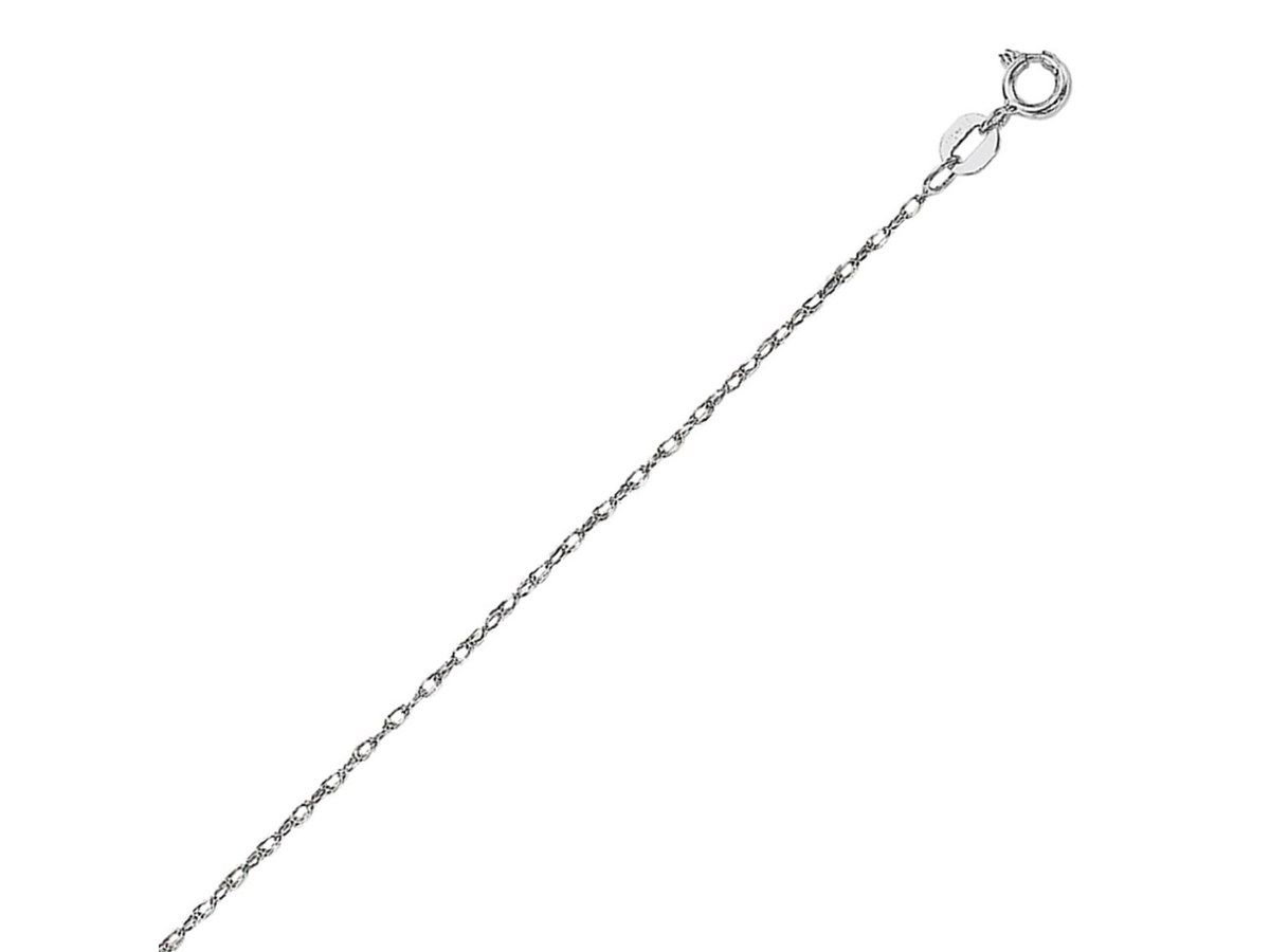 Crafted in bright 14k white gold, this 0.85 mm machine rope chain features a finely twisted design that adds subtle sparkle and durability, offering a sleek, versatile look perfect for wearing alone or pairing with a pendant.