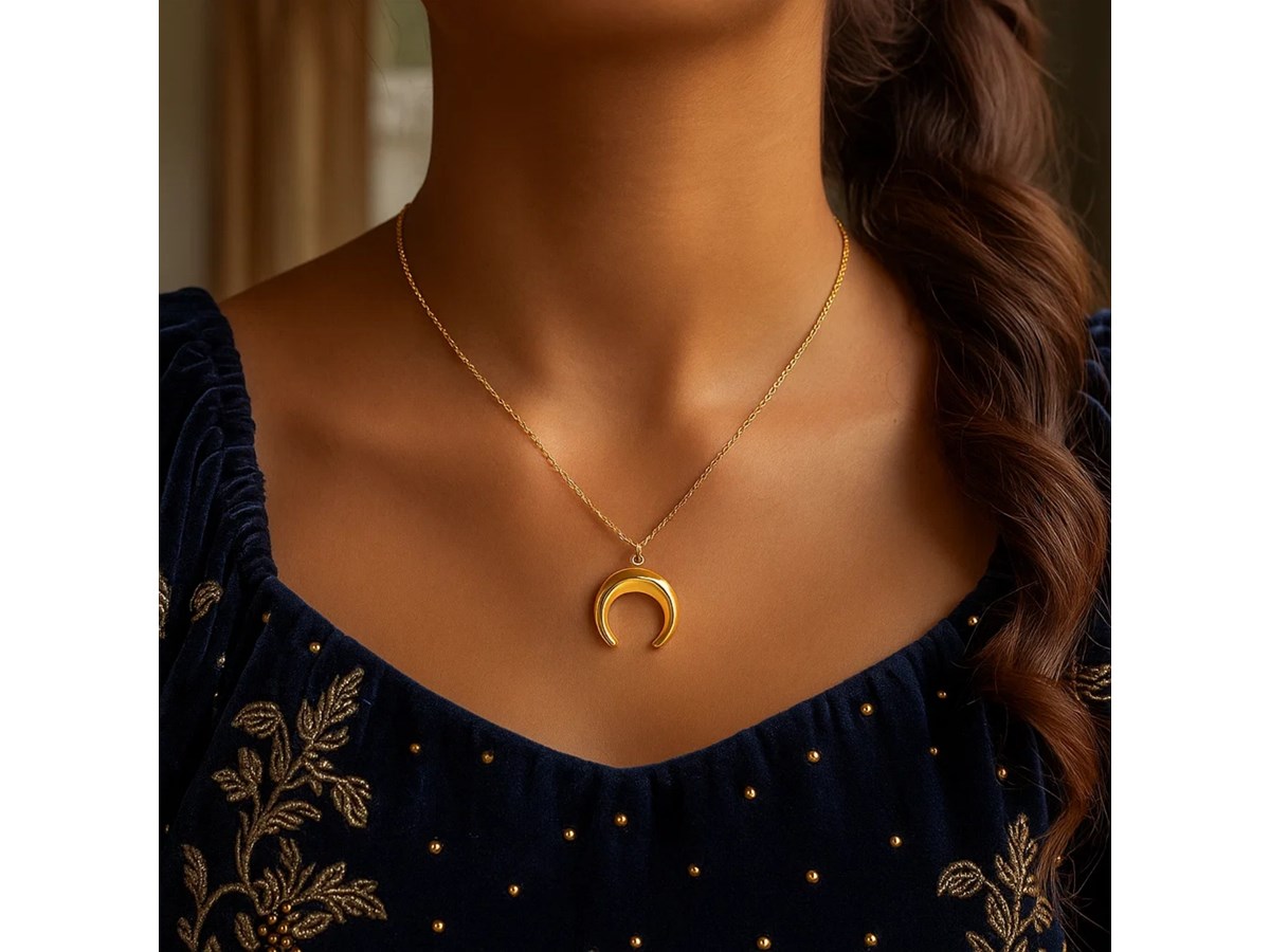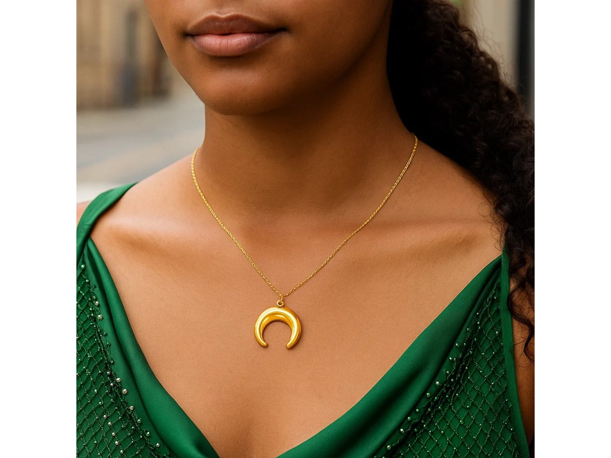 14k Yellow Gold 17 inch Necklace with Domed Moon Motif Pendant