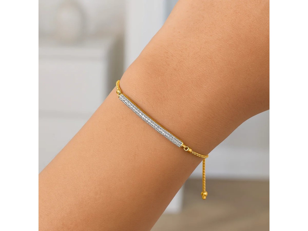 14k Yellow Gold Adjustable Bracelet with Textured Bar and Diamonds