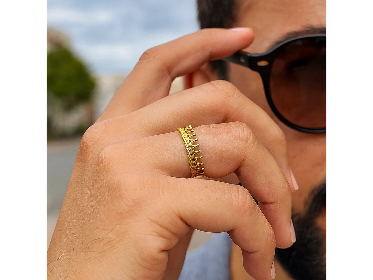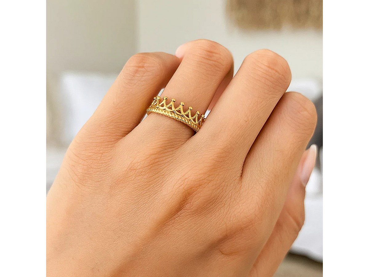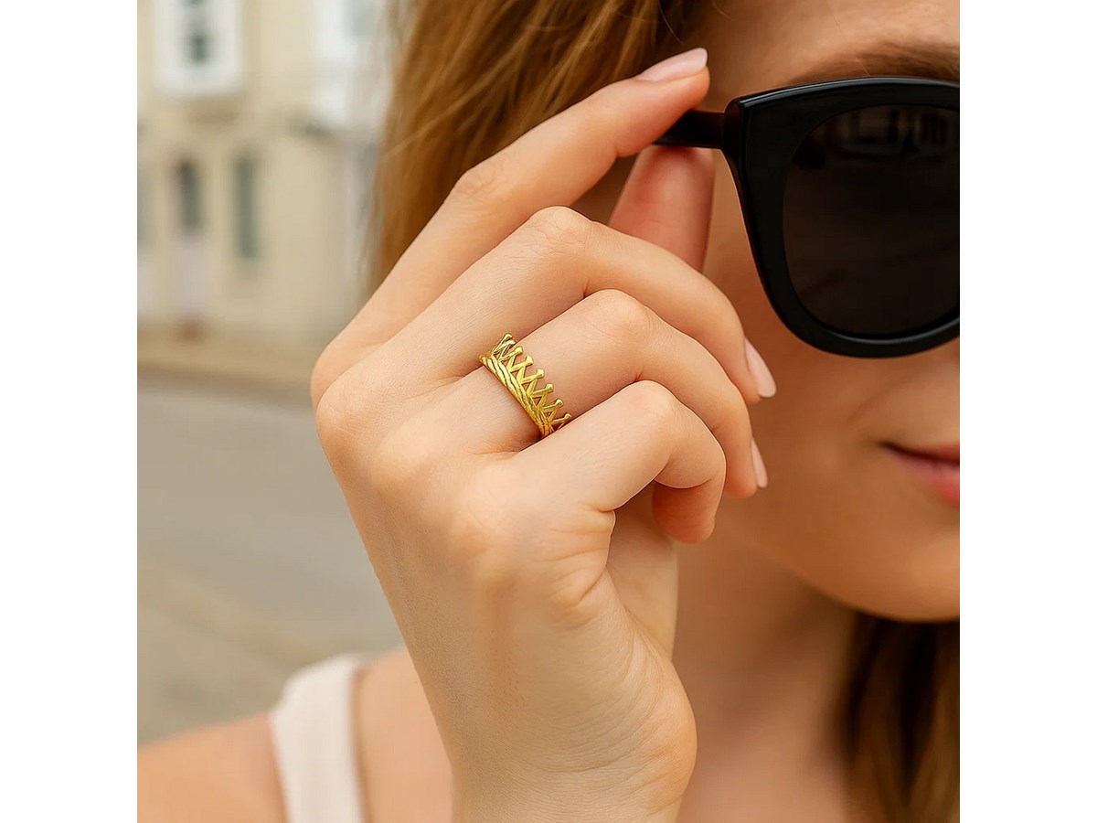 Treat her, or yourself, like royalty with this 14k yellow gold ring that features a crown-like design. Ring size 7.