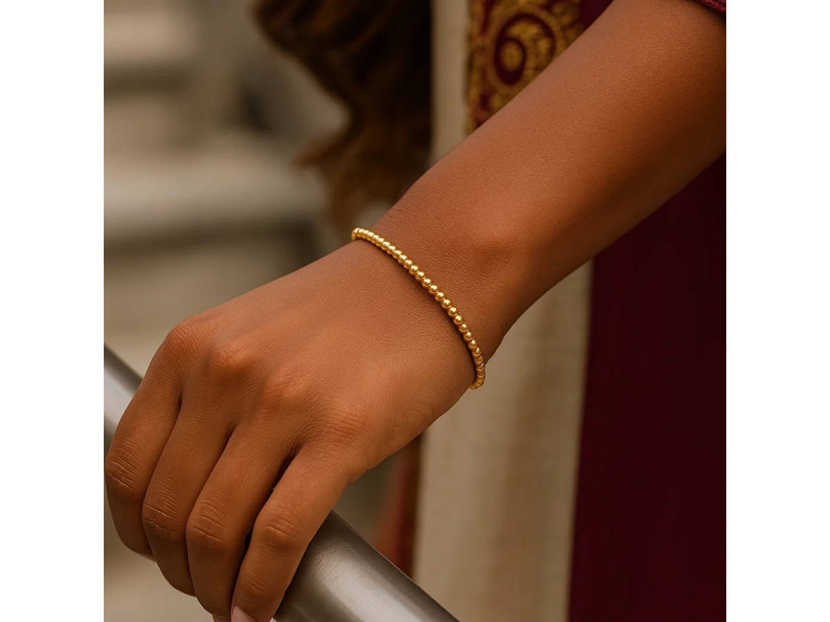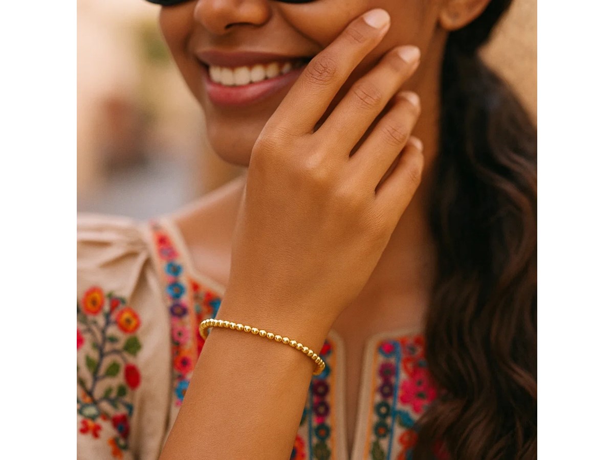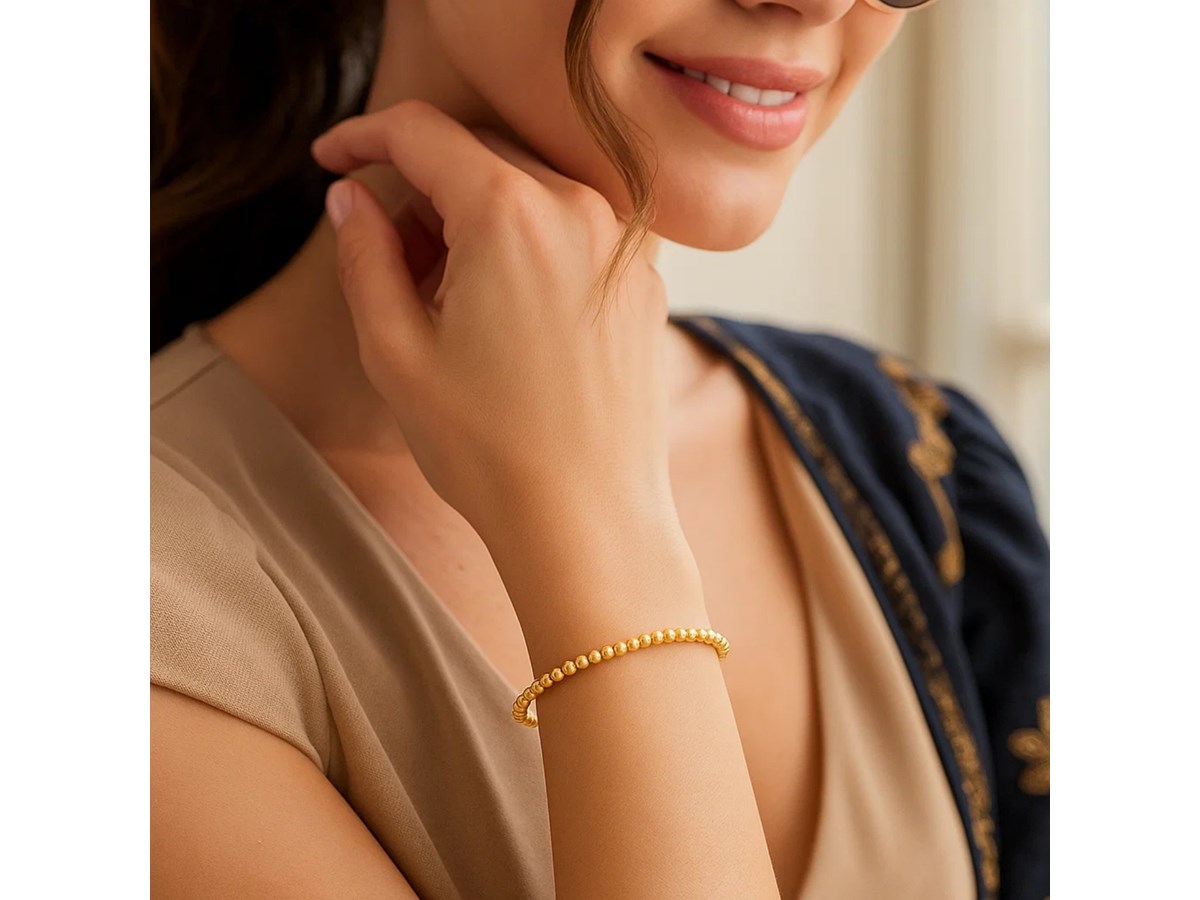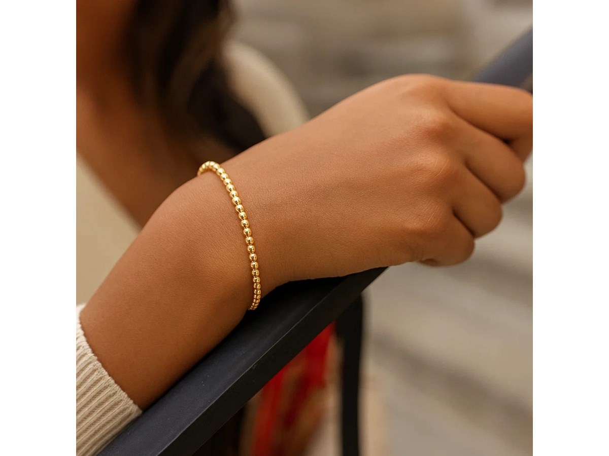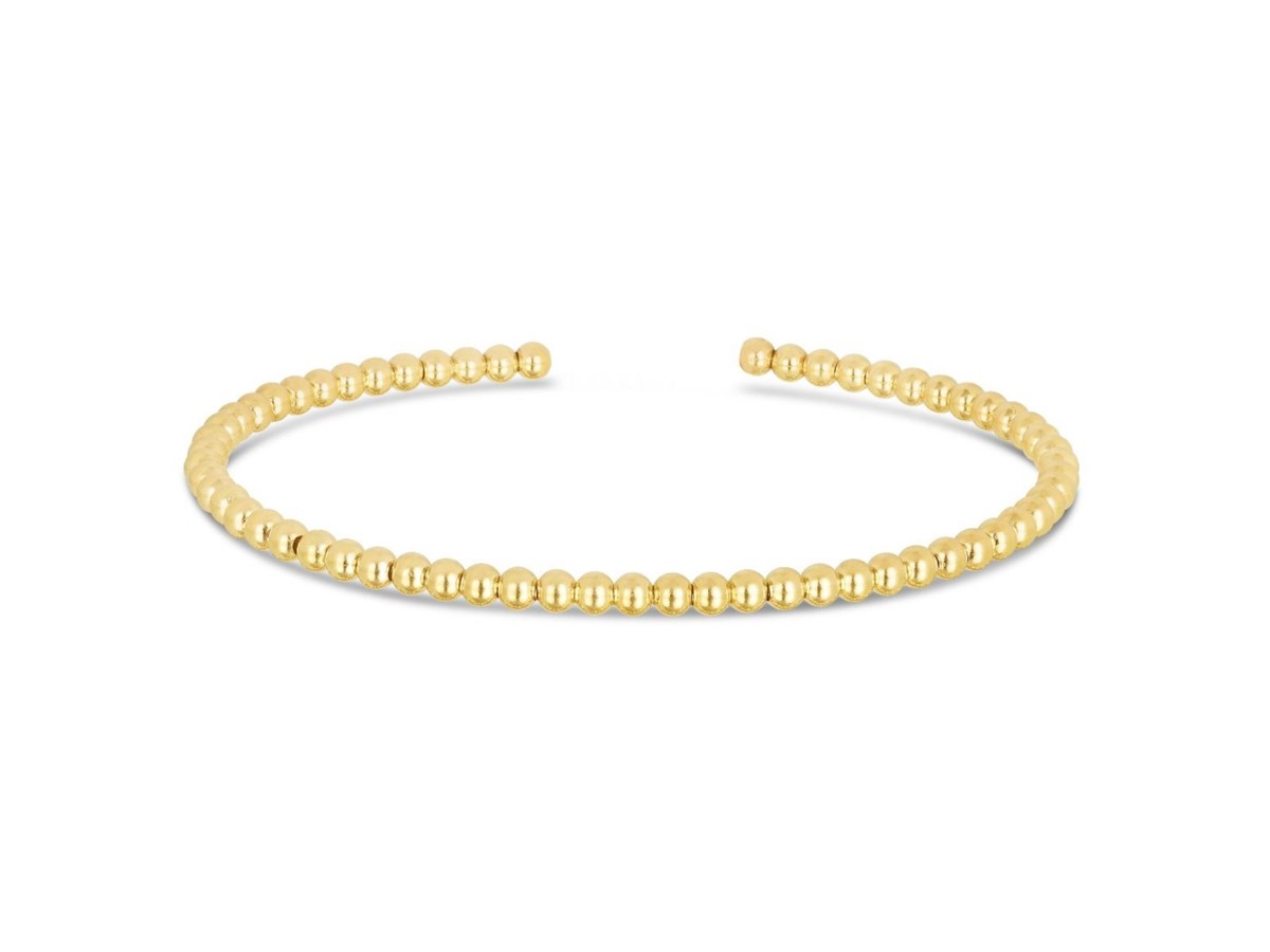 14k Yellow Gold High Polish Bead Cuff Bangle (3.00 mm)