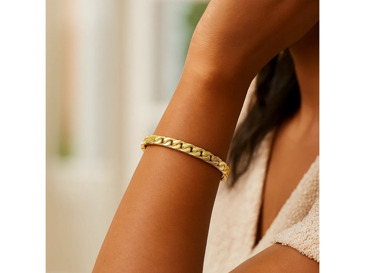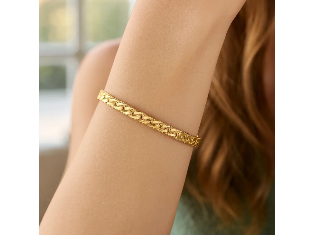 14k Yellow Gold High Polish Cuban Chain Link Bangle (4.60 mm)