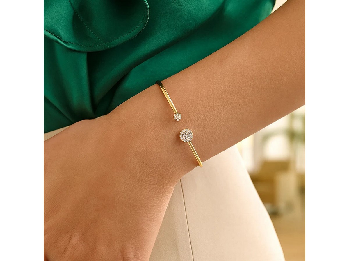 14k Yellow Gold High Polish Diamond Cluster Bangle (2.00 mm)