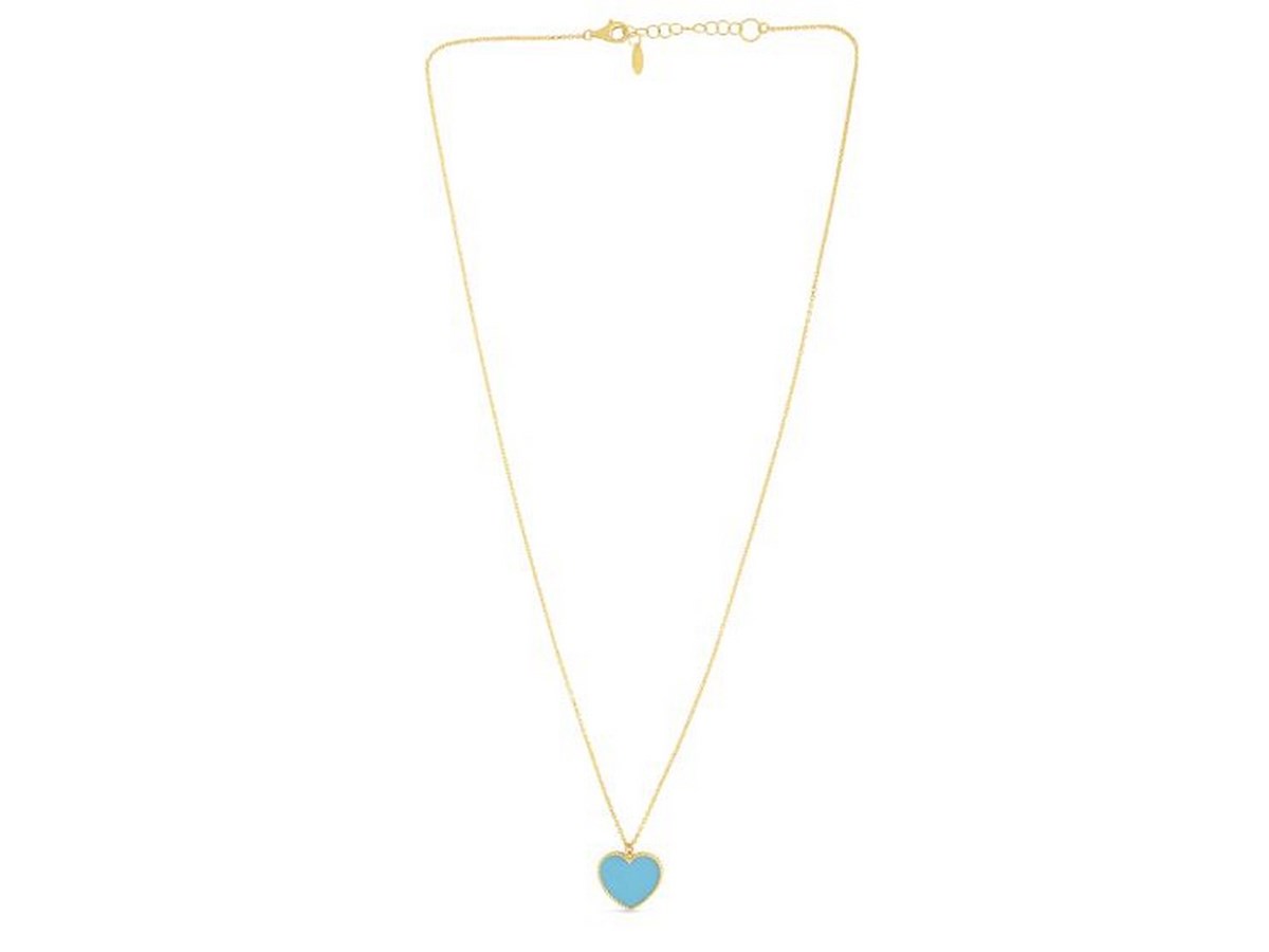 14k Yellow Gold High Polish Heart Turquoise Paste Necklace
