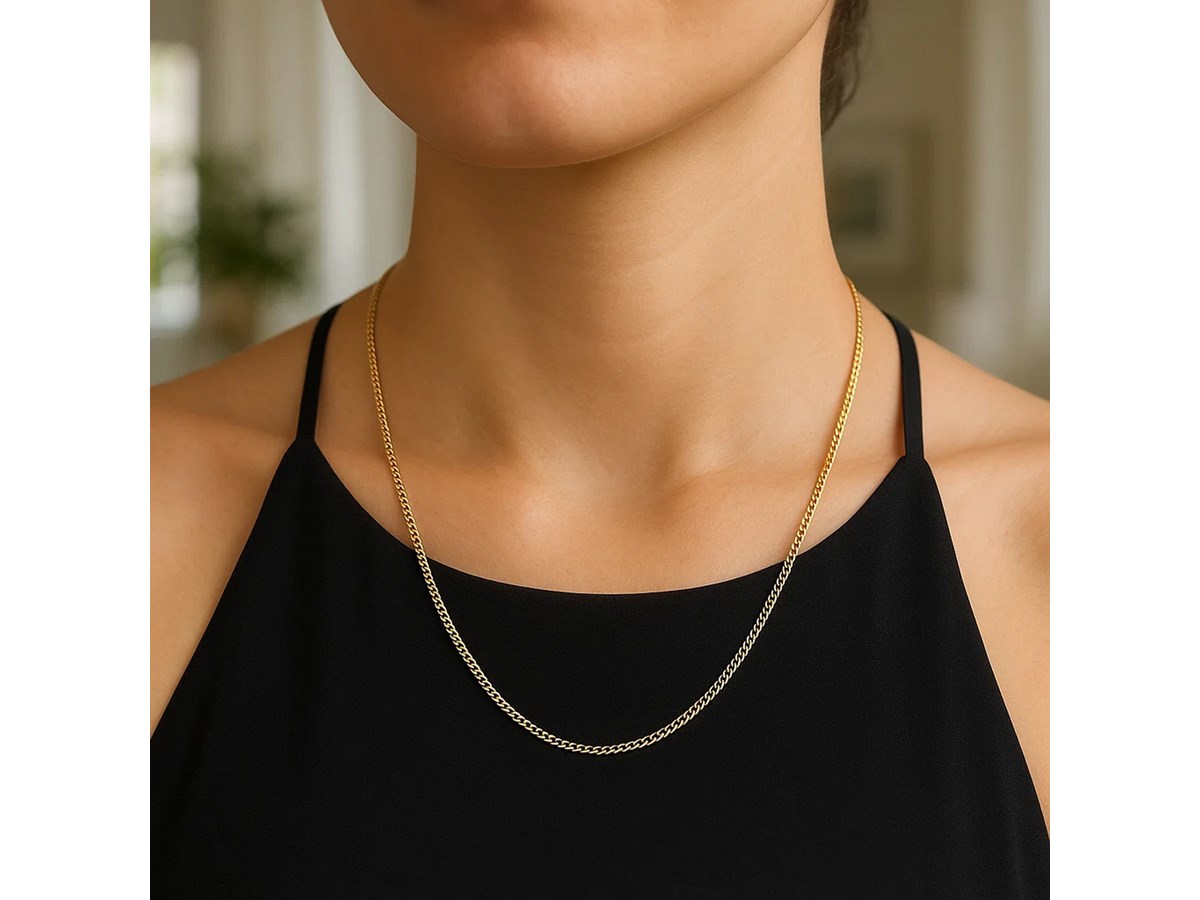 14k Yellow Gold 2.20 mm Light Gourmette Chain with Lobster Clasp. Available in 18 inches.