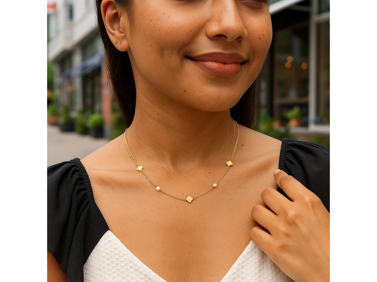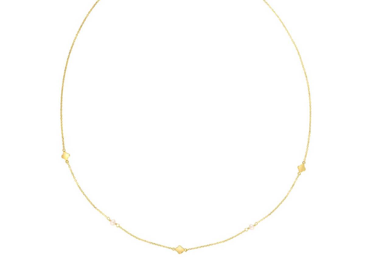 This Pearl Clover necklace is beautifully crafted in 14k yellow gold with a high polish finish and closes with a lobster clasp. A classic spin on one of the most popular styles. Available in a 18 inches length.