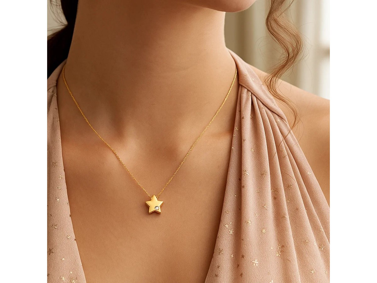 14k Yellow Gold Polished Star Necklace with Diamond