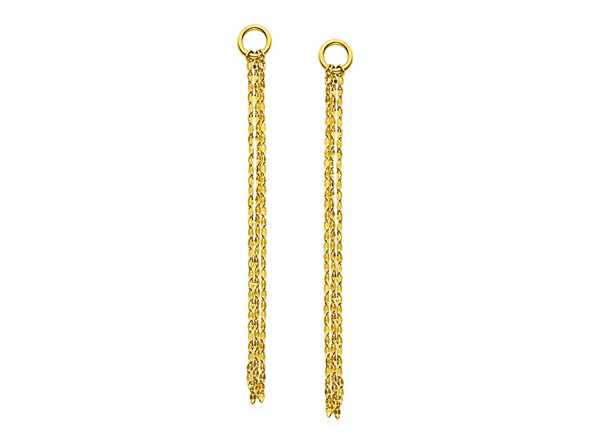 14k Yellow Gold Post Earrings with Texture Chain Dangles