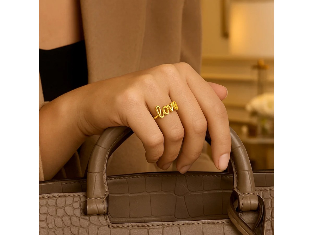 14k Yellow Gold Ring with Love