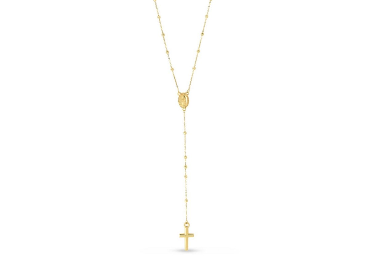 The inspiration of dazzling 14k yellow gold meets the traditional motifs of a classic rosary in this glorious necklace. Necklace is 26 inches long.