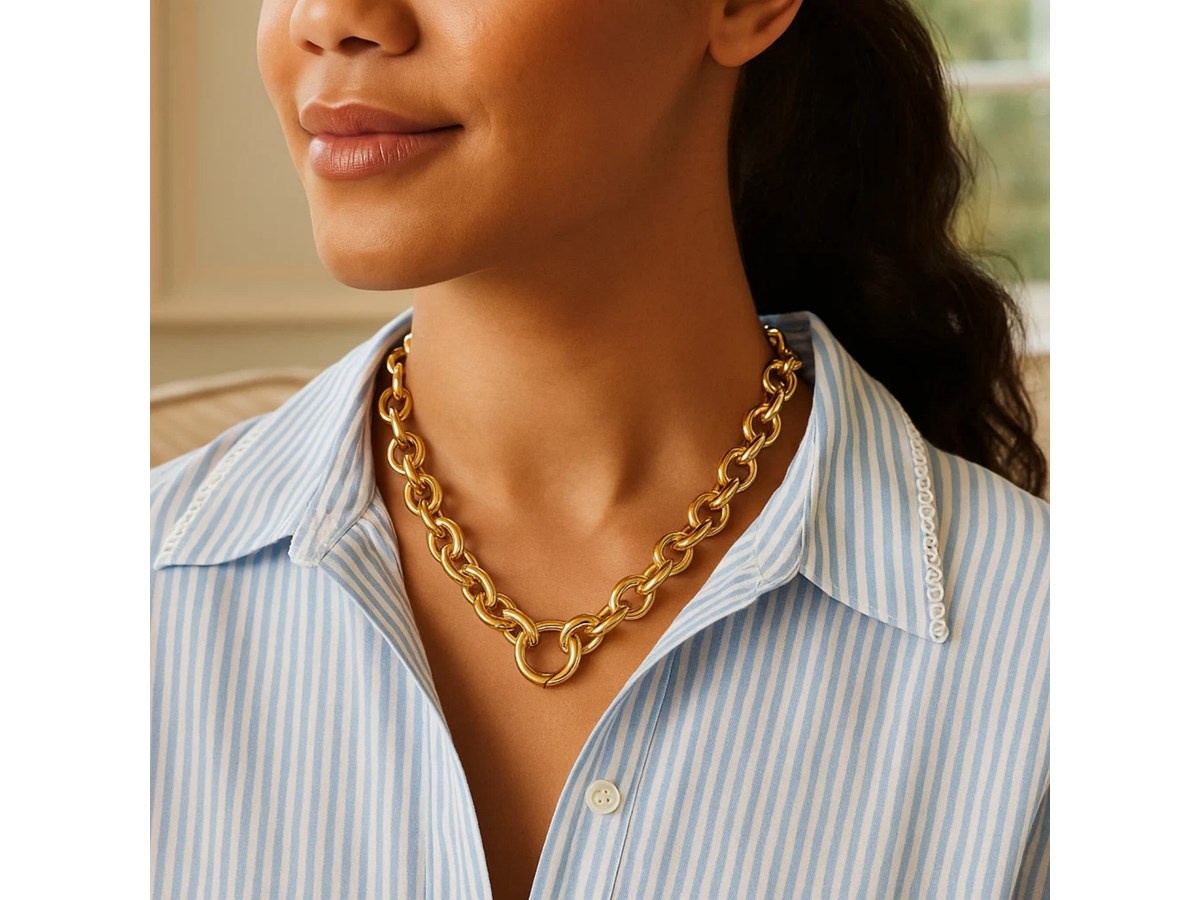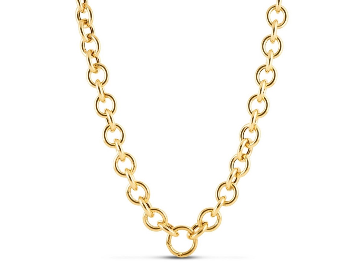 The Round Link chain is a unique addition to complete your look & express your style. Great for layering or wearing independently. Crafted in 14k yellow gold with a high polish finish & push clasp. Measuring 18 inches in length.