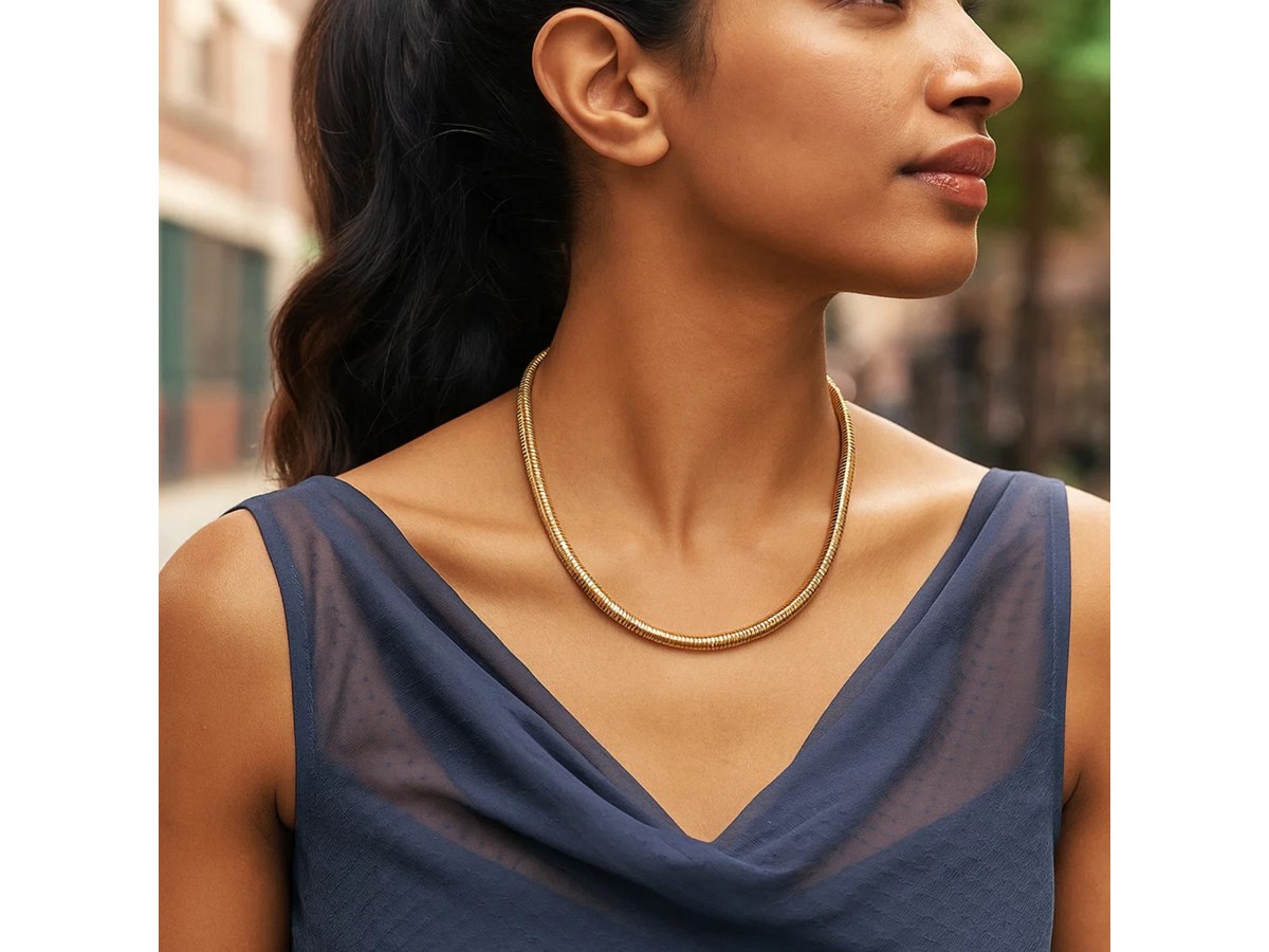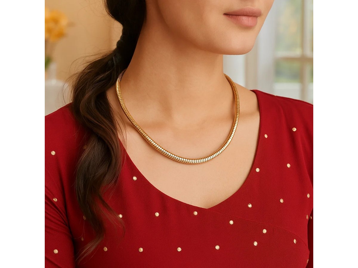 Streamline your look with the sleek design of this 14k yellow gold tubogas necklace. The 17 inches chain is crafted from 5mm wide, gently curved tubular links that flow with modern minimalism and understated sophistication. The warm yellow gold finish imparts a subtle luminosity, uniting contemporary design with timeless elegance—making it the perfect accessory for both day and evening ensembles.
