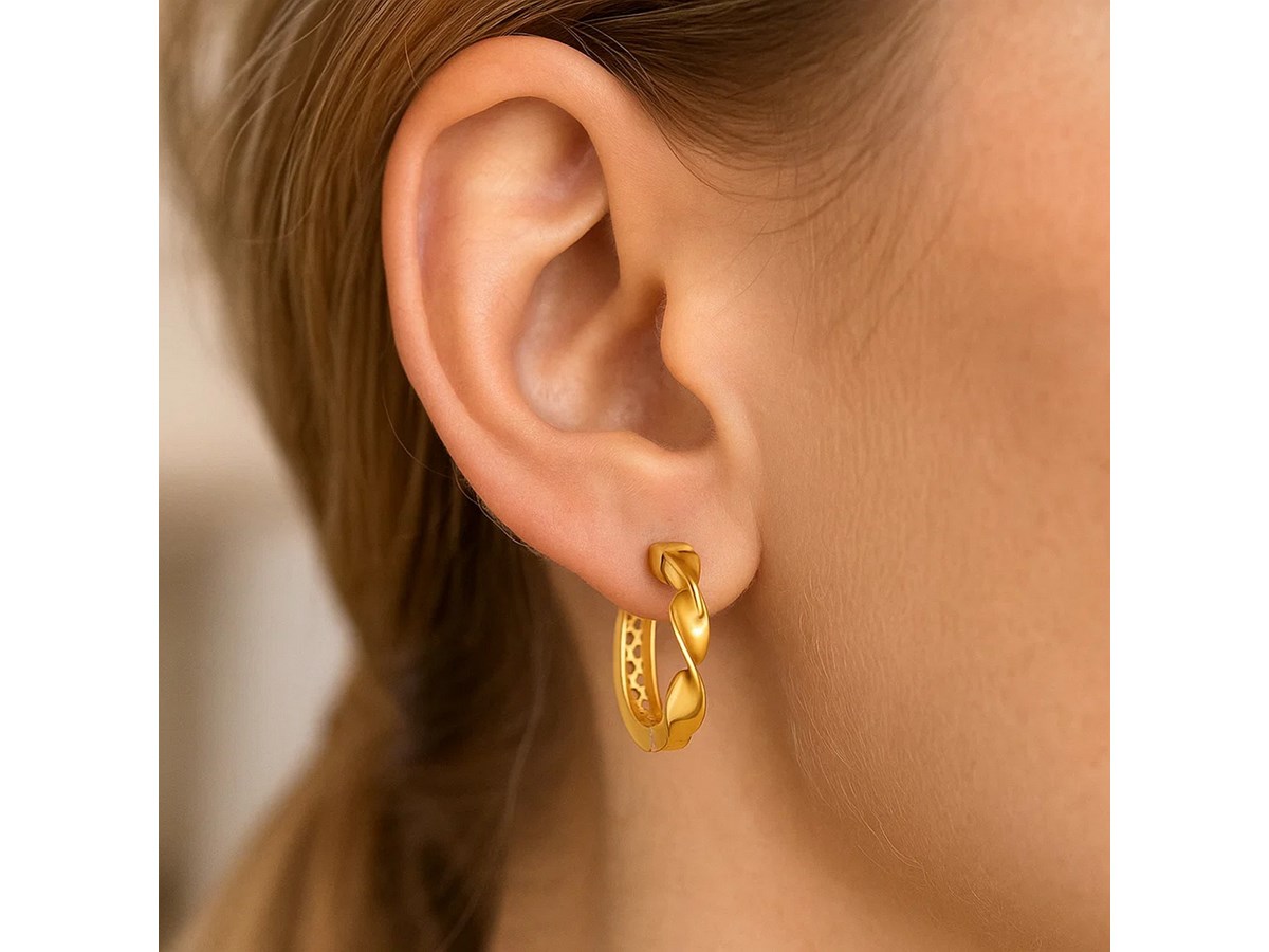 14k Yellow Gold Twist Huggie Hoops