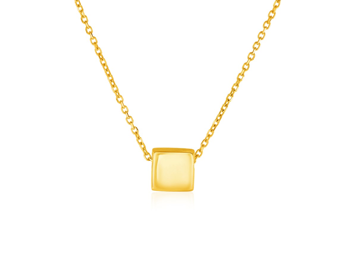 14k Yellow Gold with Shiny Square Pendant
