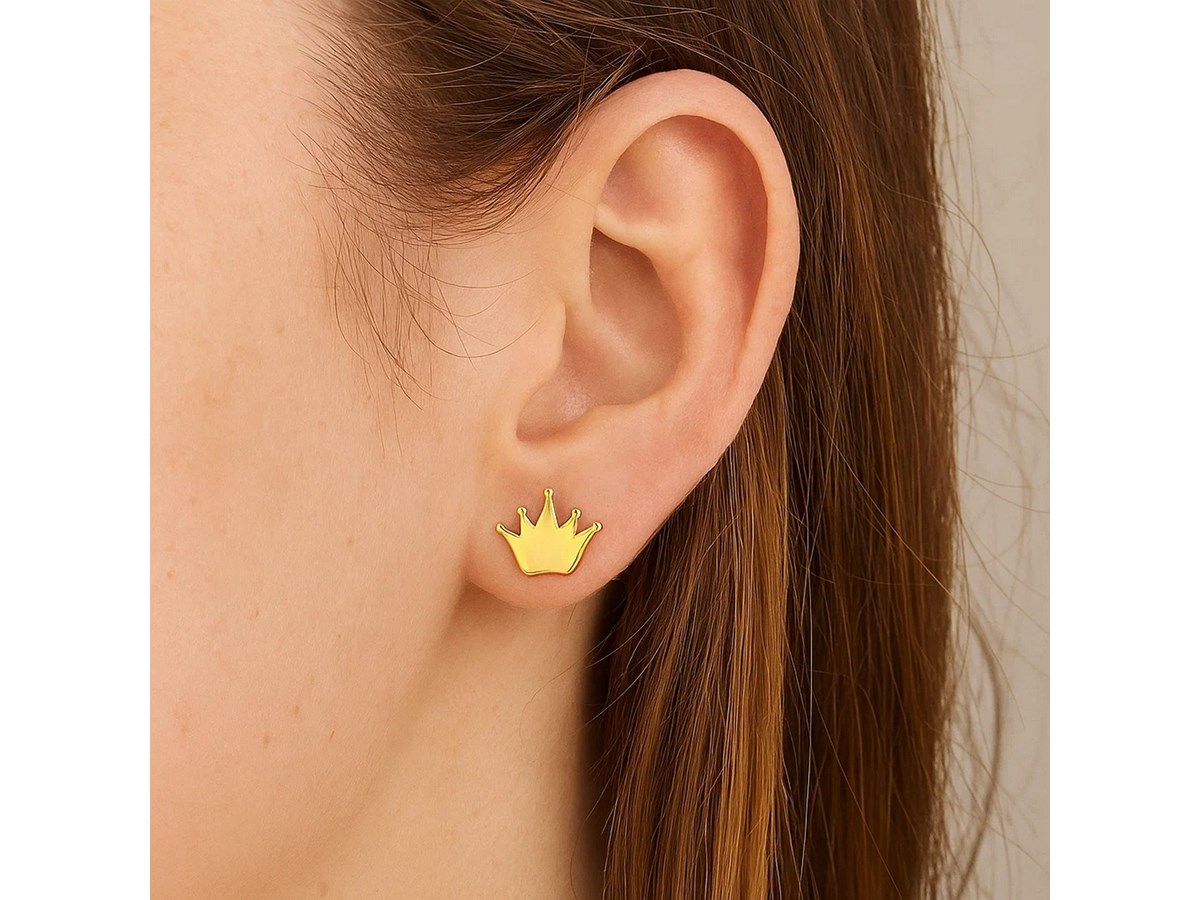 Fit for a princess, these elegant 14k yellow gold post earrings feature sweet, shiny crowns. Earrings are held in place by pushback clasps.