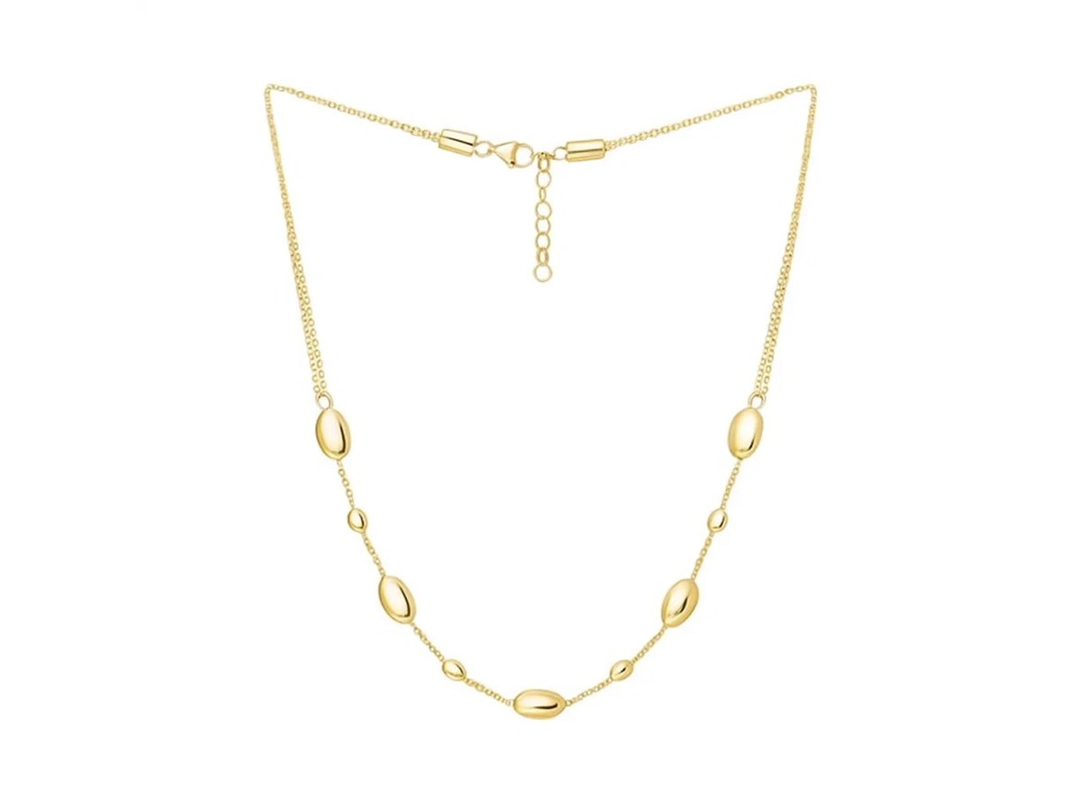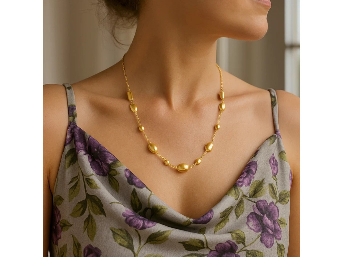 Enhance your look with this 14k yellow gold puff pebble necklace. This eye-catching design features five larger polished beads interspersed with four smaller ones. Its adaptable length allows for versatile styling options on any occasion. Blending classic appeal with modern versatility, it’s the ultimate finishing touch for any look.