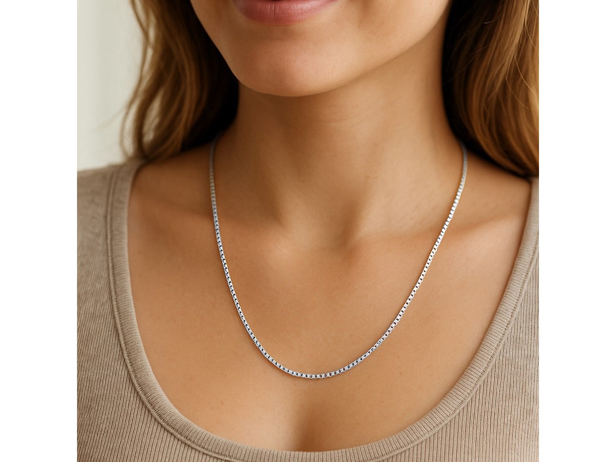 Classic Box Chain in 14k White Gold (1.10 mm)