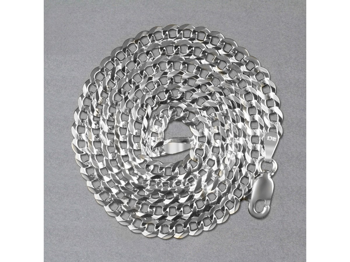 Classic Rhodium Plated Curb Chain in Sterling Silver (3.70 mm)