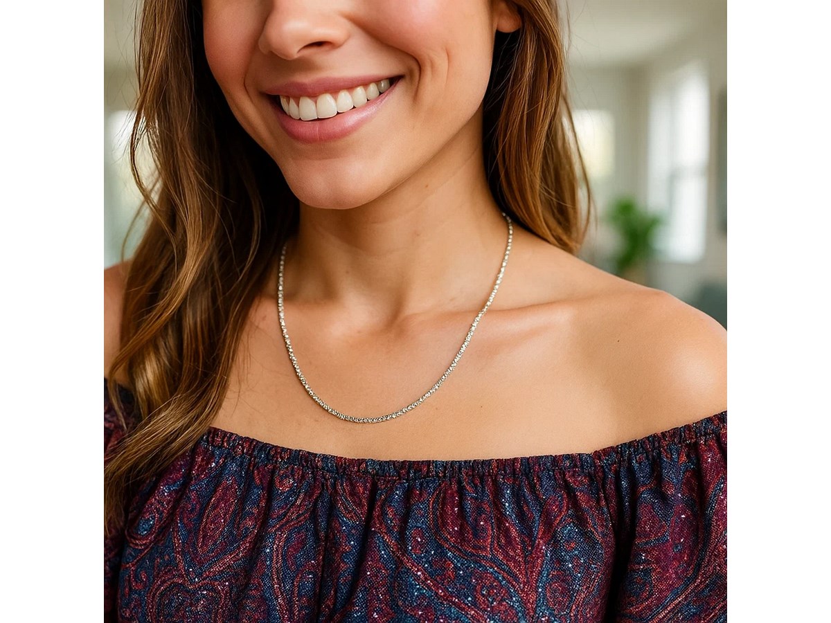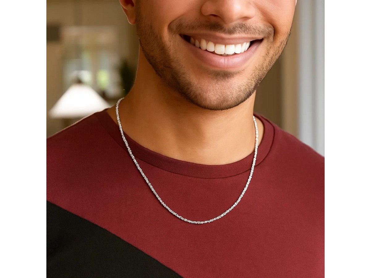 Classic rhodium plated sparkle chain crafted in 925 sterling silver measuring 2.2 millimeters in width and featuring a lobster clasp closure. Available in lengths 16 inches, 18 inches, 20 inches and 24 inches.