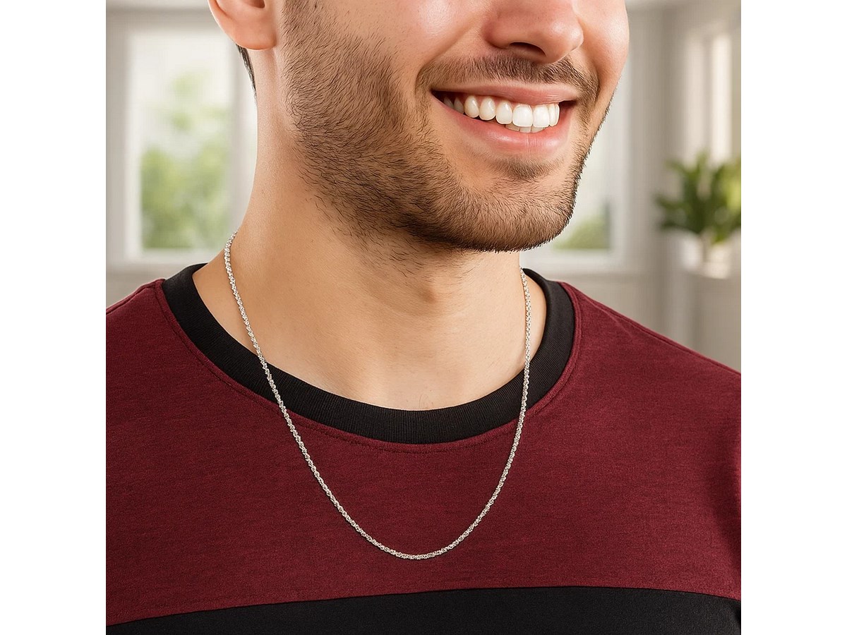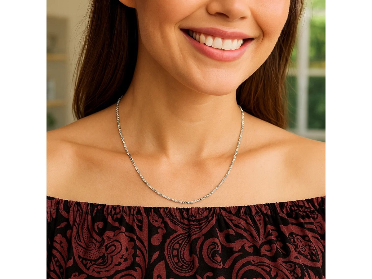 Classic rhodium plated sparkle chain crafted in sterling silver measuring 1.60 millimeters in width and featuring a lobster clasp closure. Available in lengths 16 inches, 18 inches, 20 inches and 24 inches.