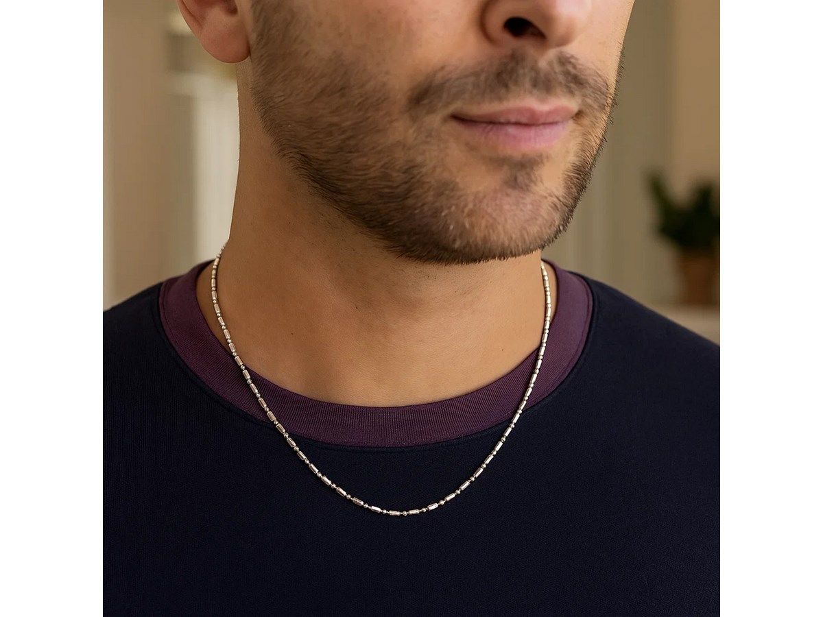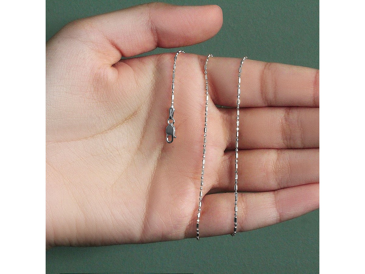 Diamond cut alternating bead chain crafted in 14k white gold measuring 1.10 millimeters in width. Available in lengths 16 inches, 18 inches and 20 inches.