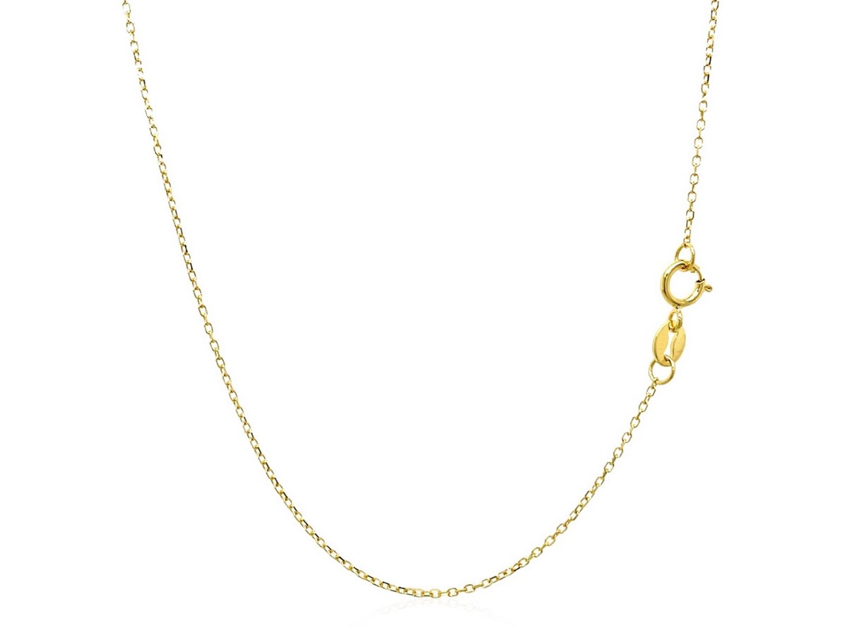 Diamond cut cable link chain crafted in 14k yellow gold measuring 1.1 millimeters in width. Available in lengths 13 inches, 16 inches,18 inches, 20 inches and 24 inches.