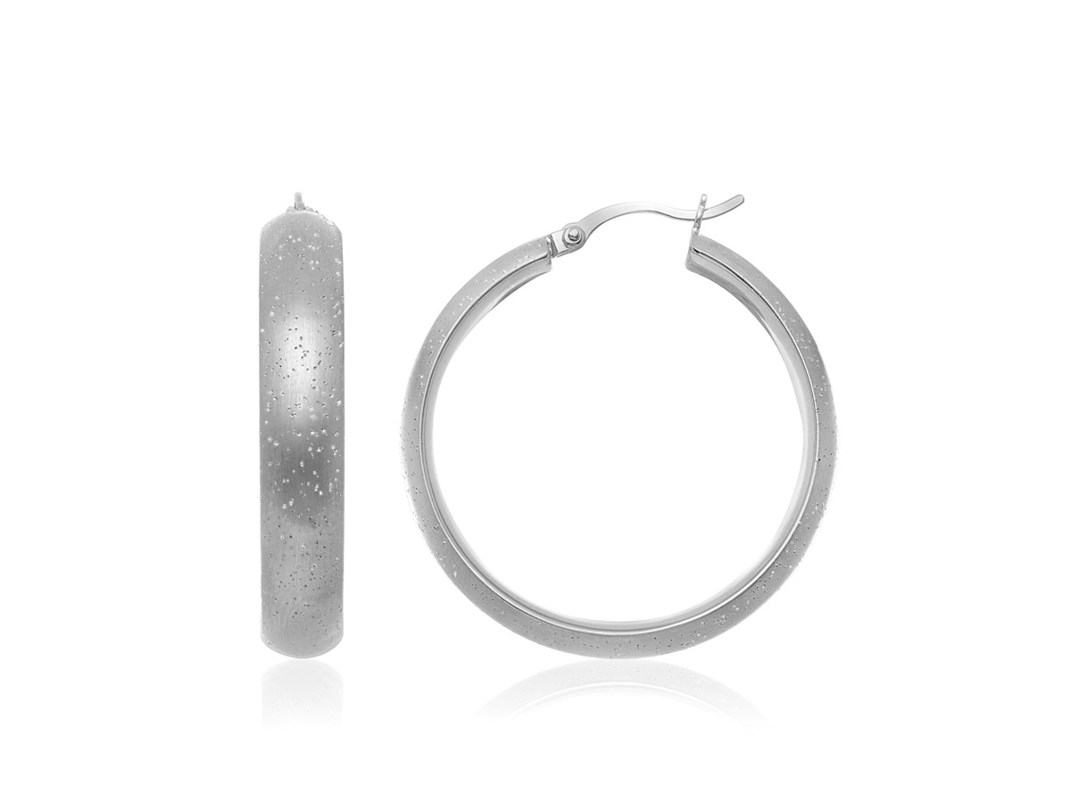 Diamond Dust Texture Round Hoop Earrings in Sterling Silver