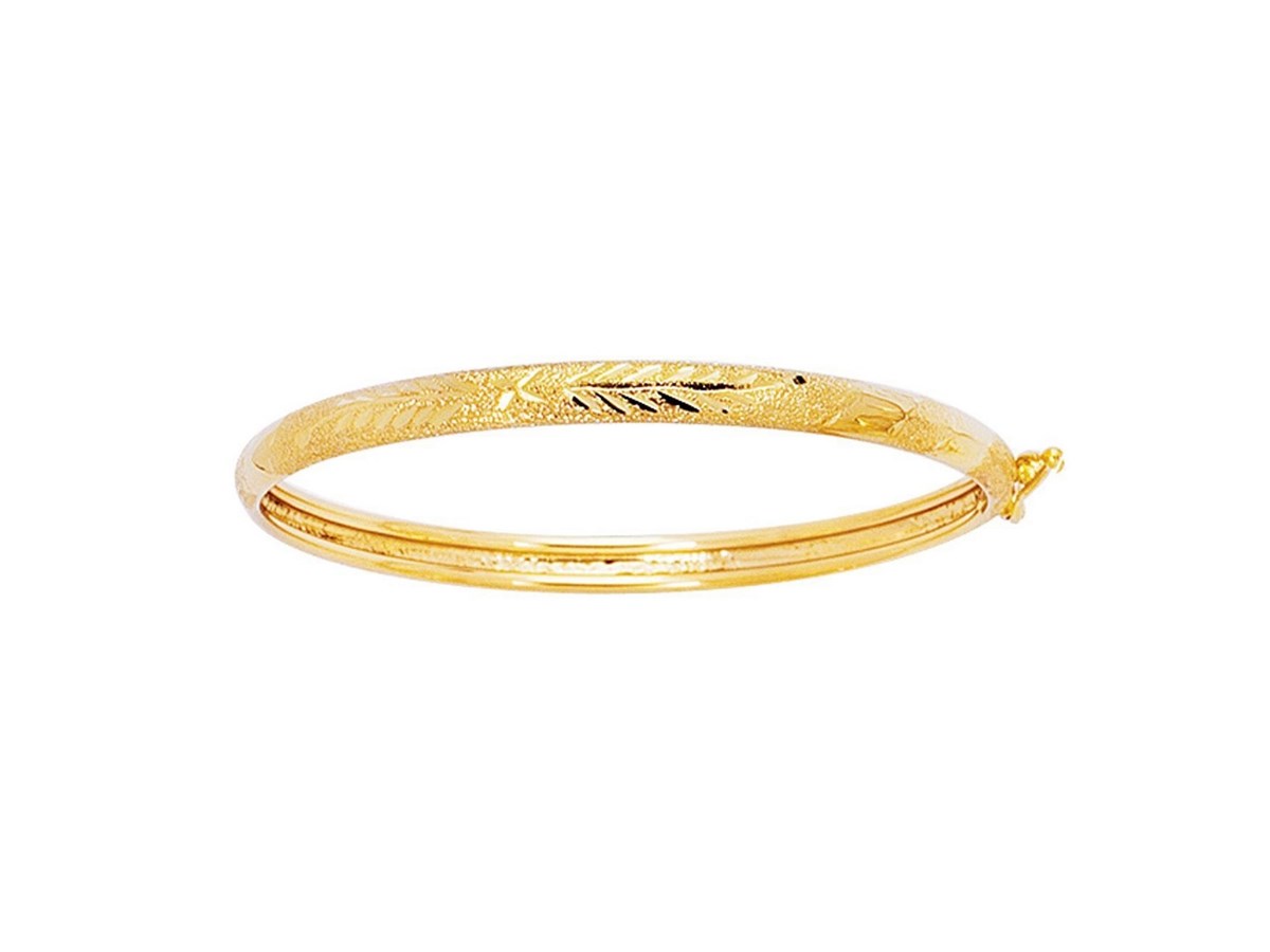 Domed Diamond Cut Motif Childrens Bangle in 14k Yellow Gold (5.50 mm)