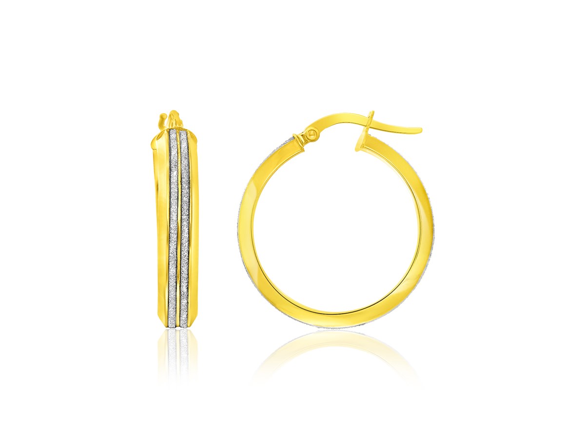 Double Glitter Row Round Hoop Earrings in 14K Two-Tone Gold