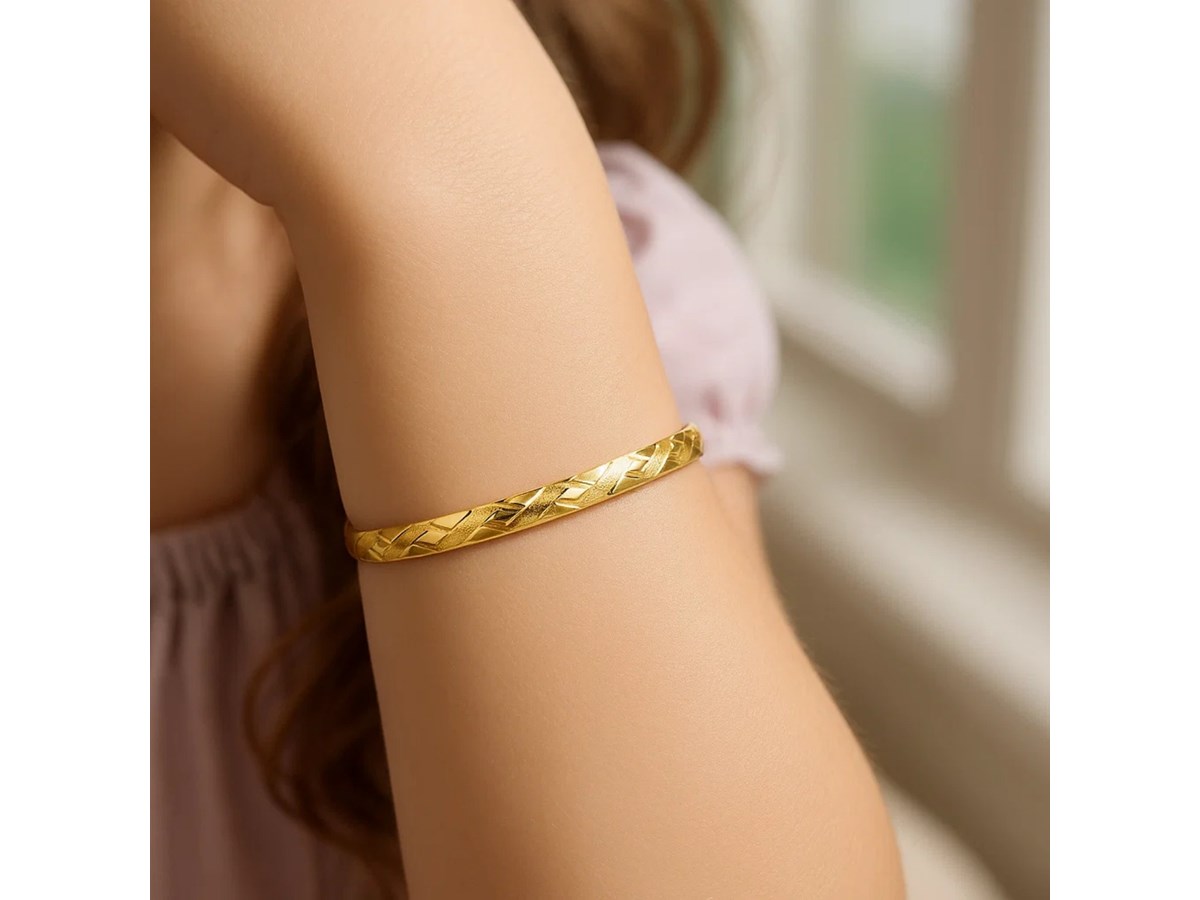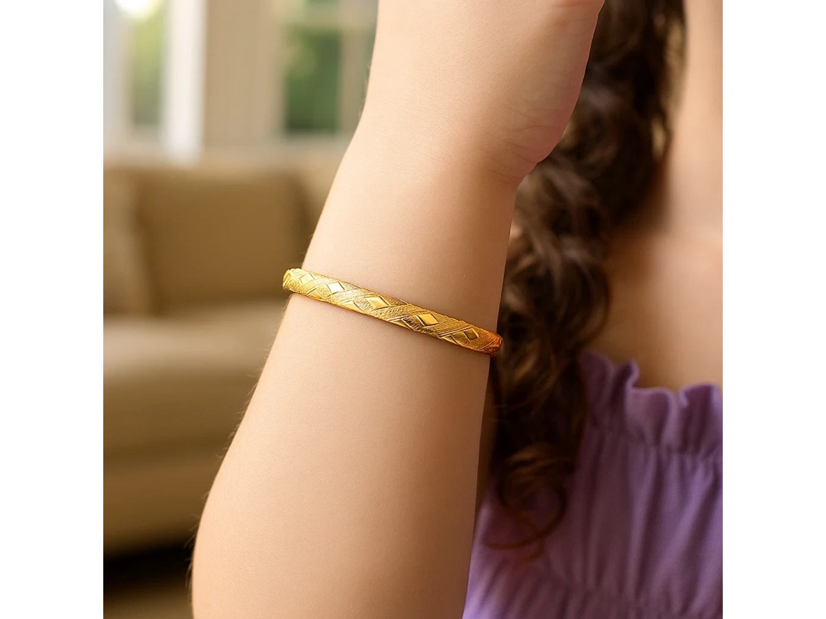 Fancy Childrens Bangle with Diamond Cuts in 14k Yellow Gold (5.50 mm)