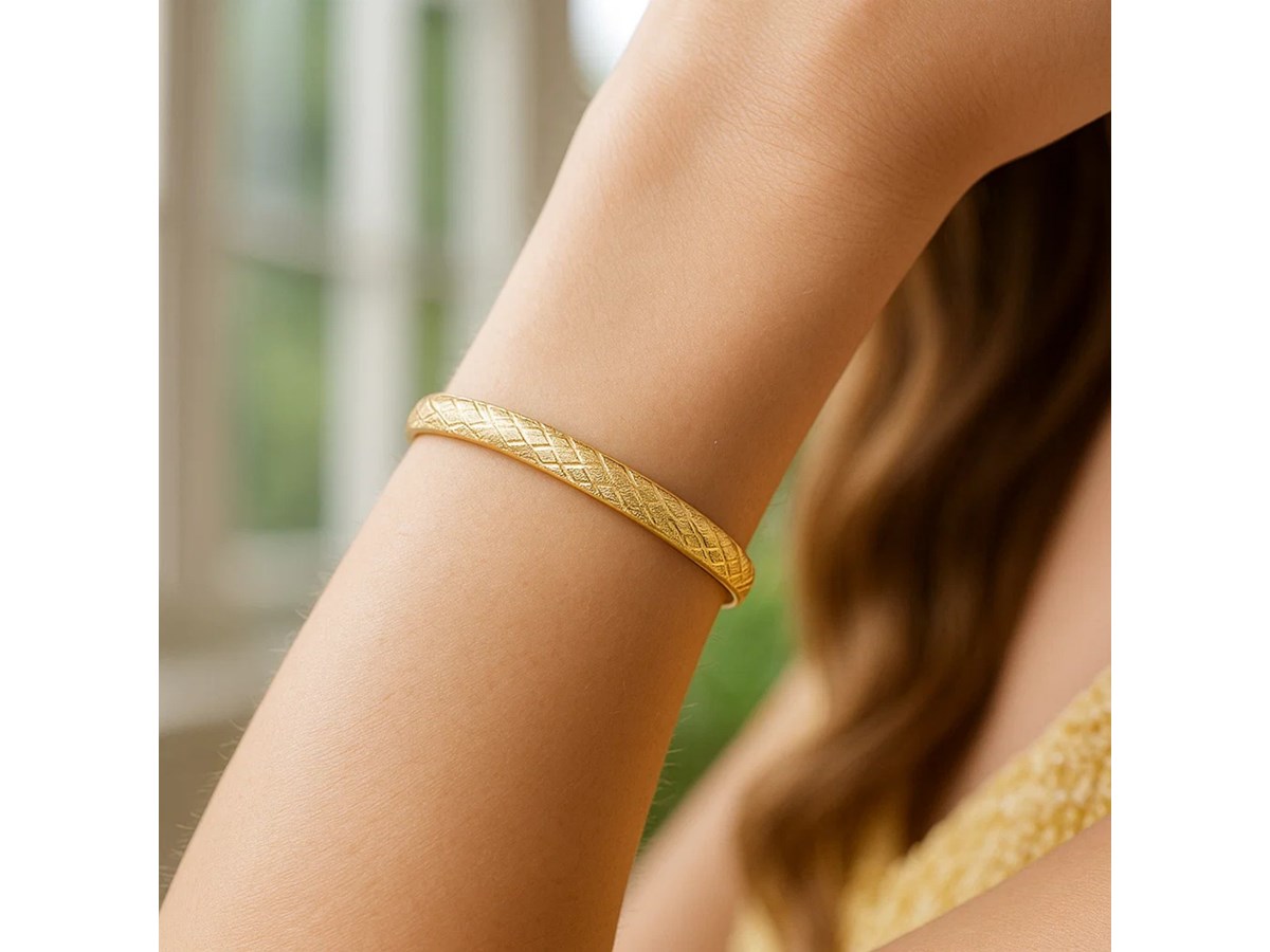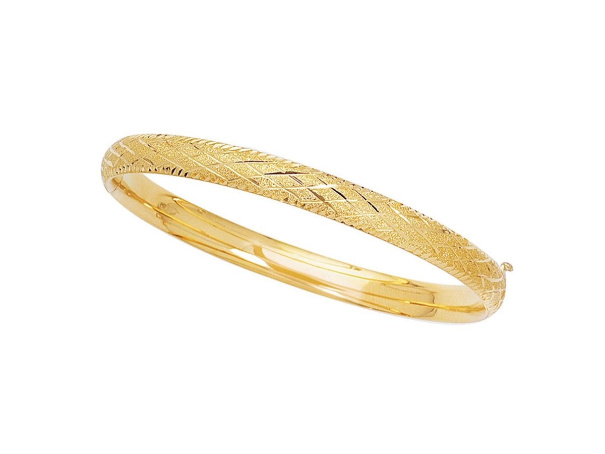 Fancy Diamond Cut Bangle in 14k Yellow Gold (6.00 mm)